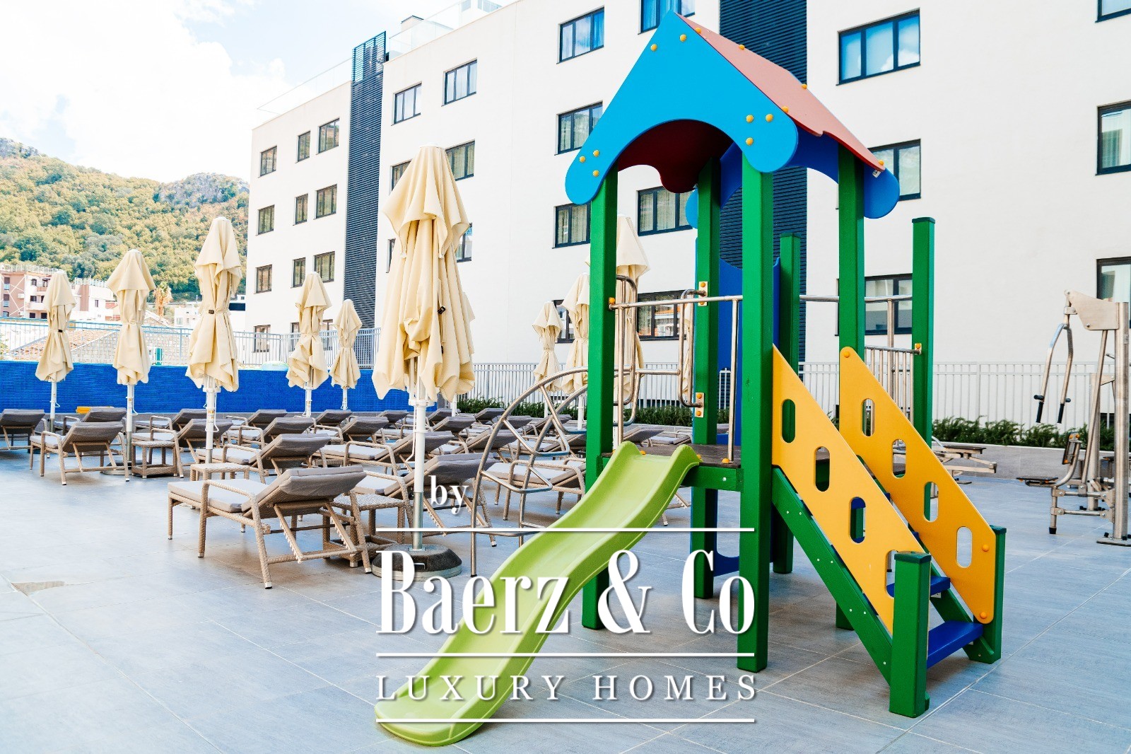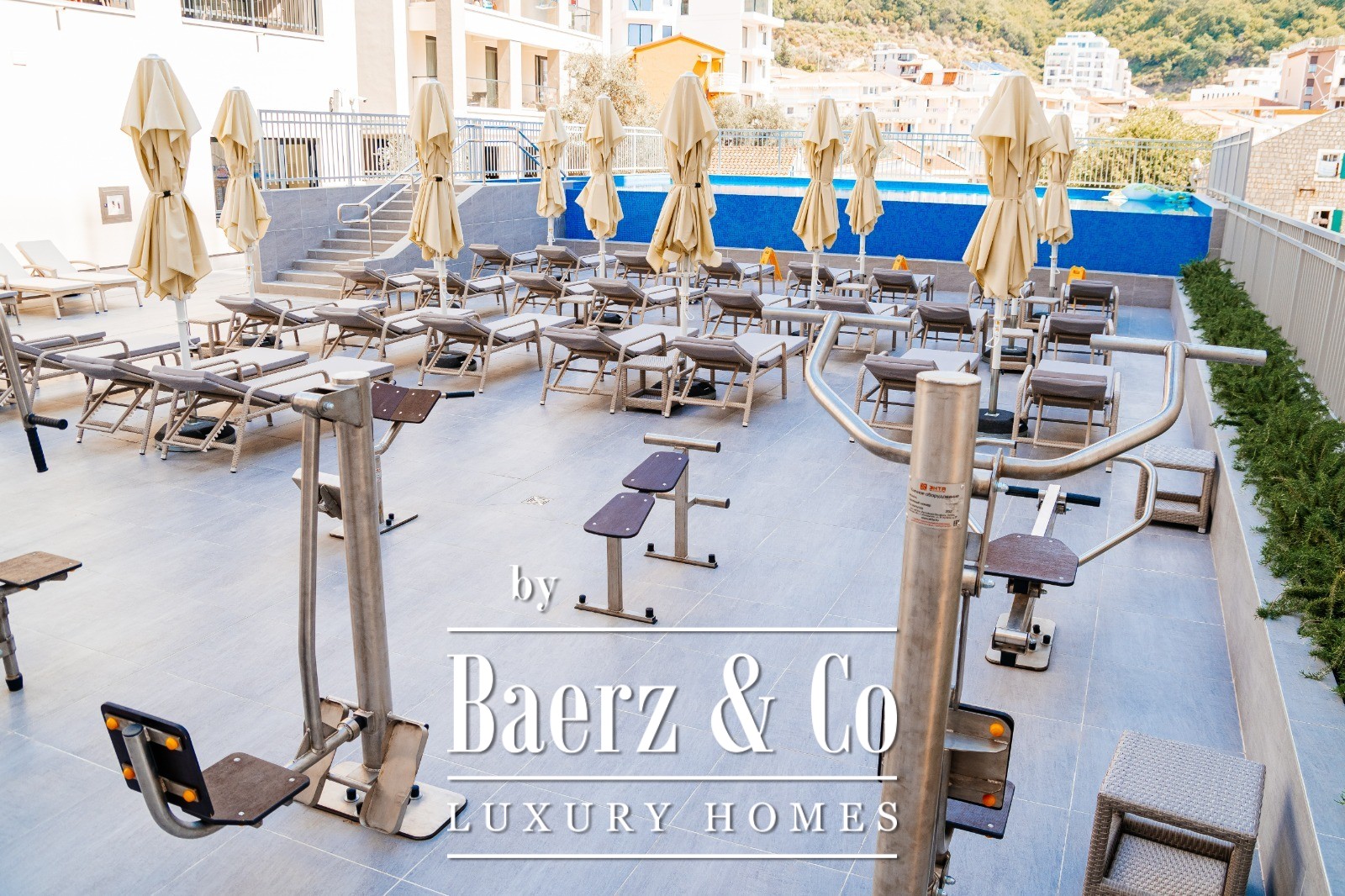 Residents benefit from amenities such as a swimming pool, outdoor gym, hammam, and children’s playground. The local setting is lively, with restaurants, cafés, boutiques, and the seaside promenade within walking reach. Fully furnished and ready for immediate occupancy or rental, this apartment offers both lifestyle appeal and year-round investment potential. Its proximity to dining and leisure options ensures both convenience and privacy on the Budva Riviera.