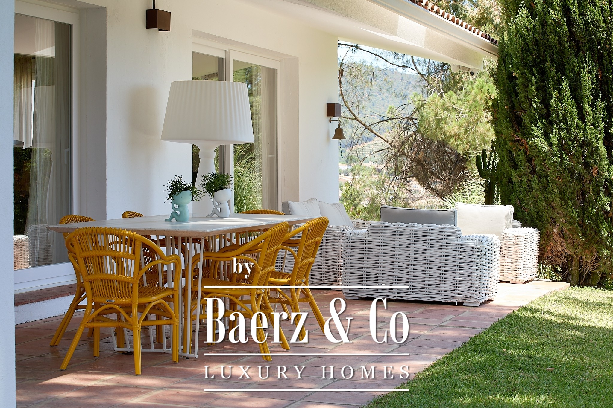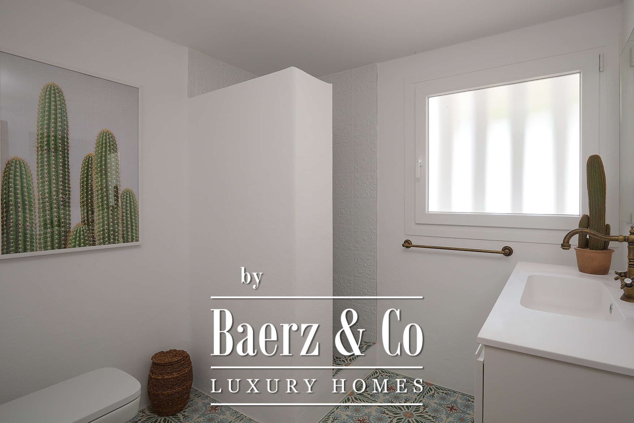 A separate loft-style guest house provides guests with complete autonomy, including its own kitchen and bathroom. Outside, a new swimming pool, solarium, landscaped gardens, and a covered dining and barbecue area evoke authentic Mediterranean retreat. A large private garage accentuates practical luxury.