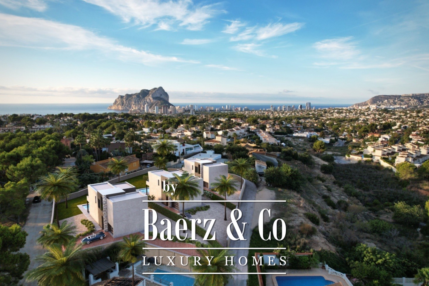 Modern villa Calpe is a statement of understated luxury, designed for those drawn to peace and refinement. With a living area of 234 m² and a plot of 800 m², this villa features three bedrooms and three bathrooms, reflecting contemporary architectural clarity and openness. Expanses of glazing invite natural light throughout the interiors, while energy-efficient amenities, including aerothermal climate control and underfloor heating, offer truly sustainable living.