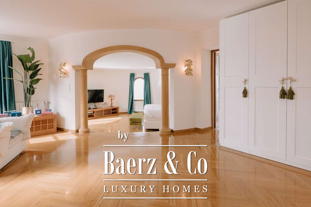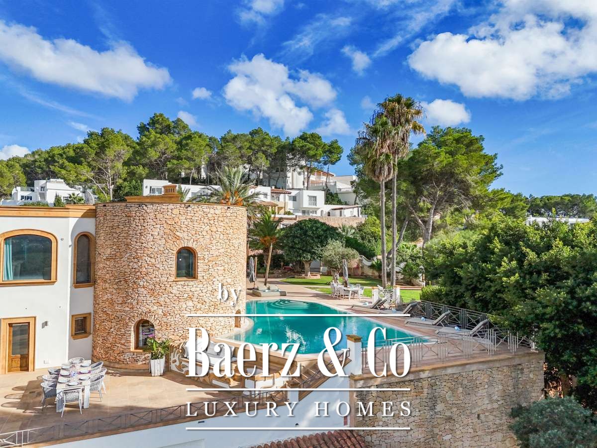 Villa Can Furnet with Panoramic Sea and City Views commands a privileged position within one of Ibiza’s most discreet and guarded residential enclaves. This villa articulates a rare sense of privacy, space and calm, yet Ibiza Town and Marina Botafoch remain within a ten-minute drive. The villa offers 992 m² of interior living over a 2,504 m² plot, with eight bedrooms and nine bathrooms, including two separate guest apartments with private entrances, thoughtfully designed for guests or staff who value privacy.