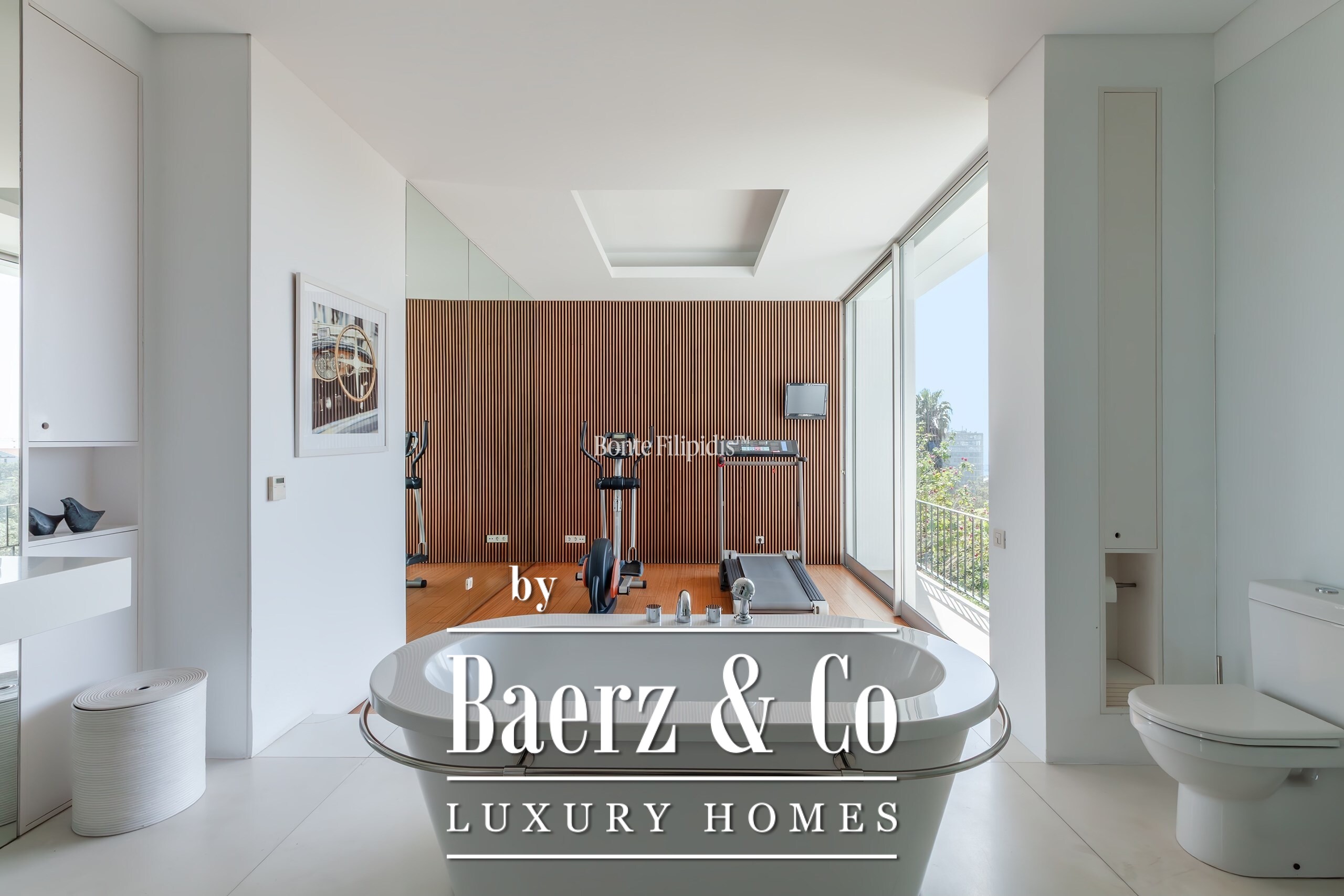 The bedroom floor is anchored by a serene primary suite with its own terrace, walk-in wardrobe, ensuite bathroom, and gym. Three further bedrooms share a sea-facing terrace and two additional bathrooms. The 216 m² atelier floor, with potential for independent access, adapts as a guest apartment, studio, or private retreat.