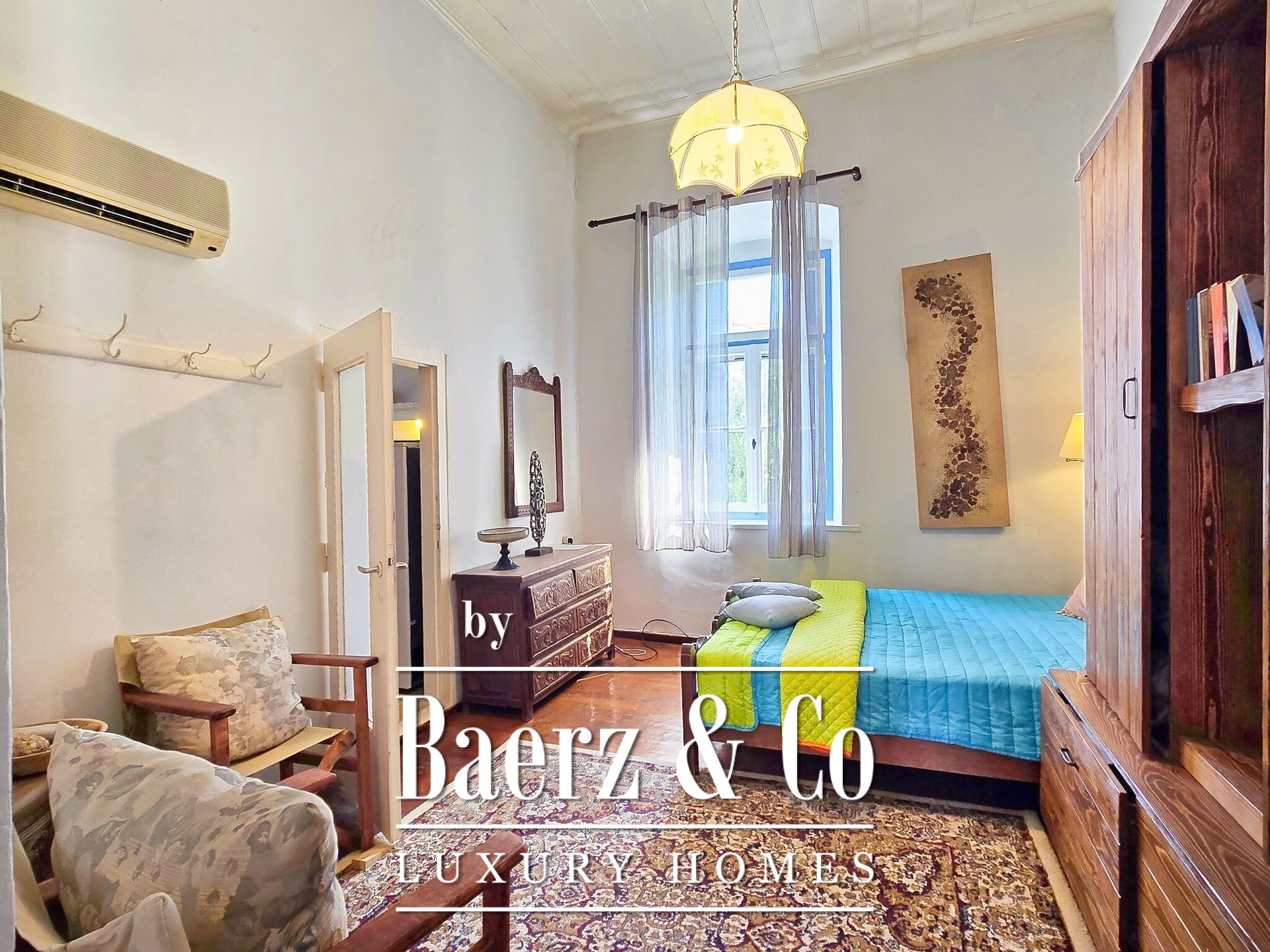 In front of the beach of Agios Mamas, we will encounter a rare gem of the great architecture of Spetses. This is a first floor apartment, which is an integral part of a well-preserved stone-built mansion. With a total area of ​​198.90 sq m, the apartment is distinguished by the sense of grandeur and authenticity it exudes, while above it there is a 12.90 sq m attic, with a small terrace that offers a unique view. Upon entering the