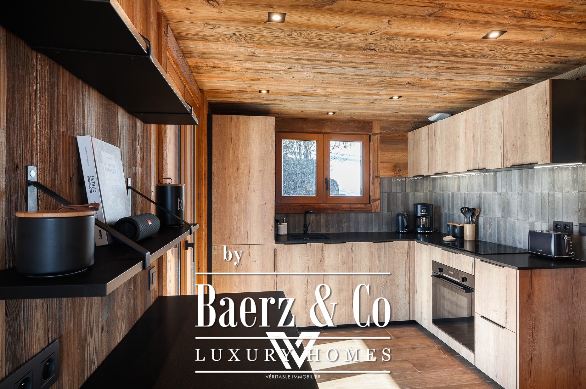 The interior has been fully curated by an interior designer, offering understated luxury and a welcoming atmosphere. The layout features a living room with fireplace, a fitted kitchen, and three en-suite bedrooms, each paired with its own bathroom, ensuring privacy and comfort. Exterior amenities include a terrace, balcony, and garden, inviting quiet moments in view of Mont Blanc.