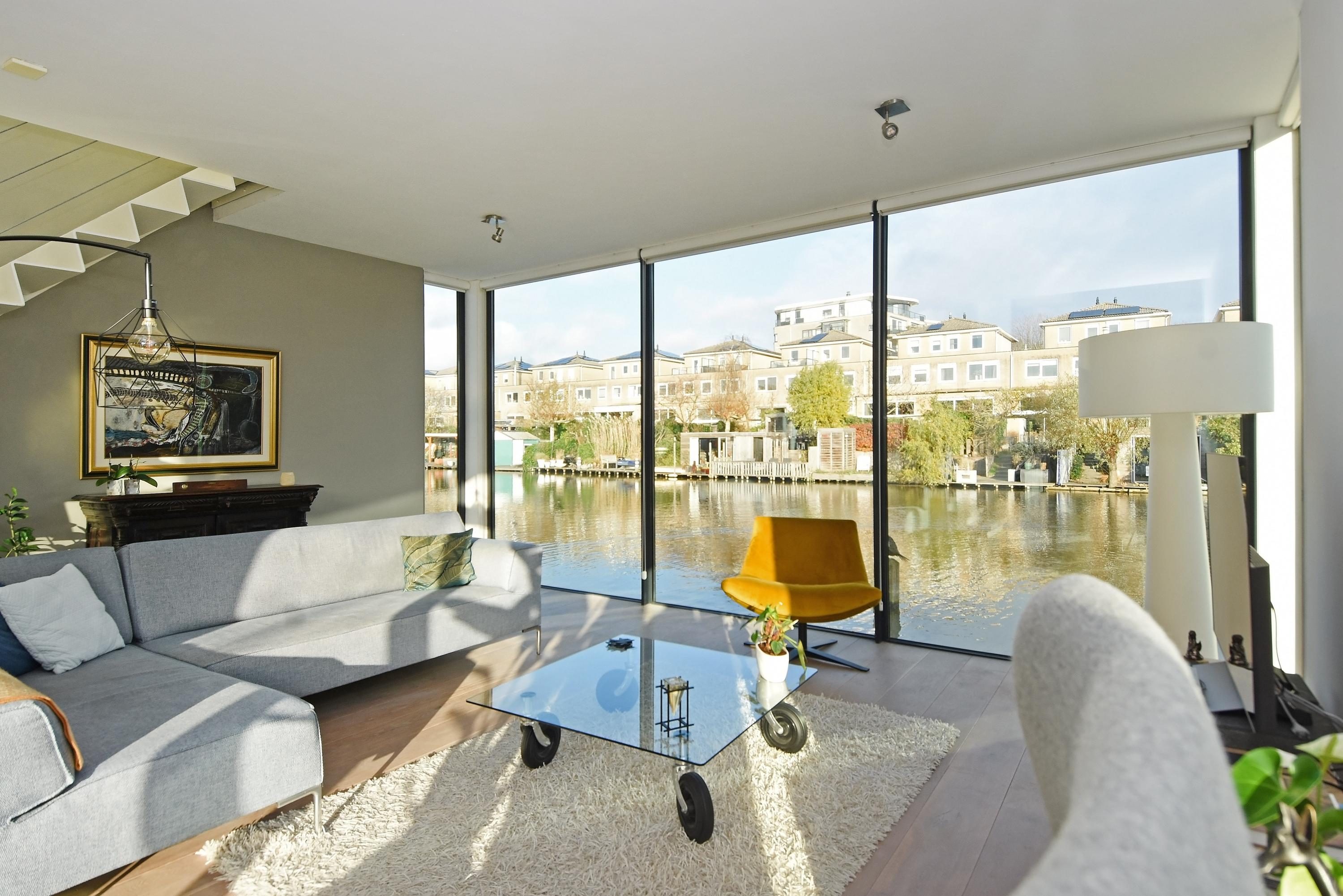 This charming, spacious and energy-efficient floating home is situated in a special location on the water, surrounded by peace and greenery. The property has a luxurious appearance, is well maintained and very practically laid out.