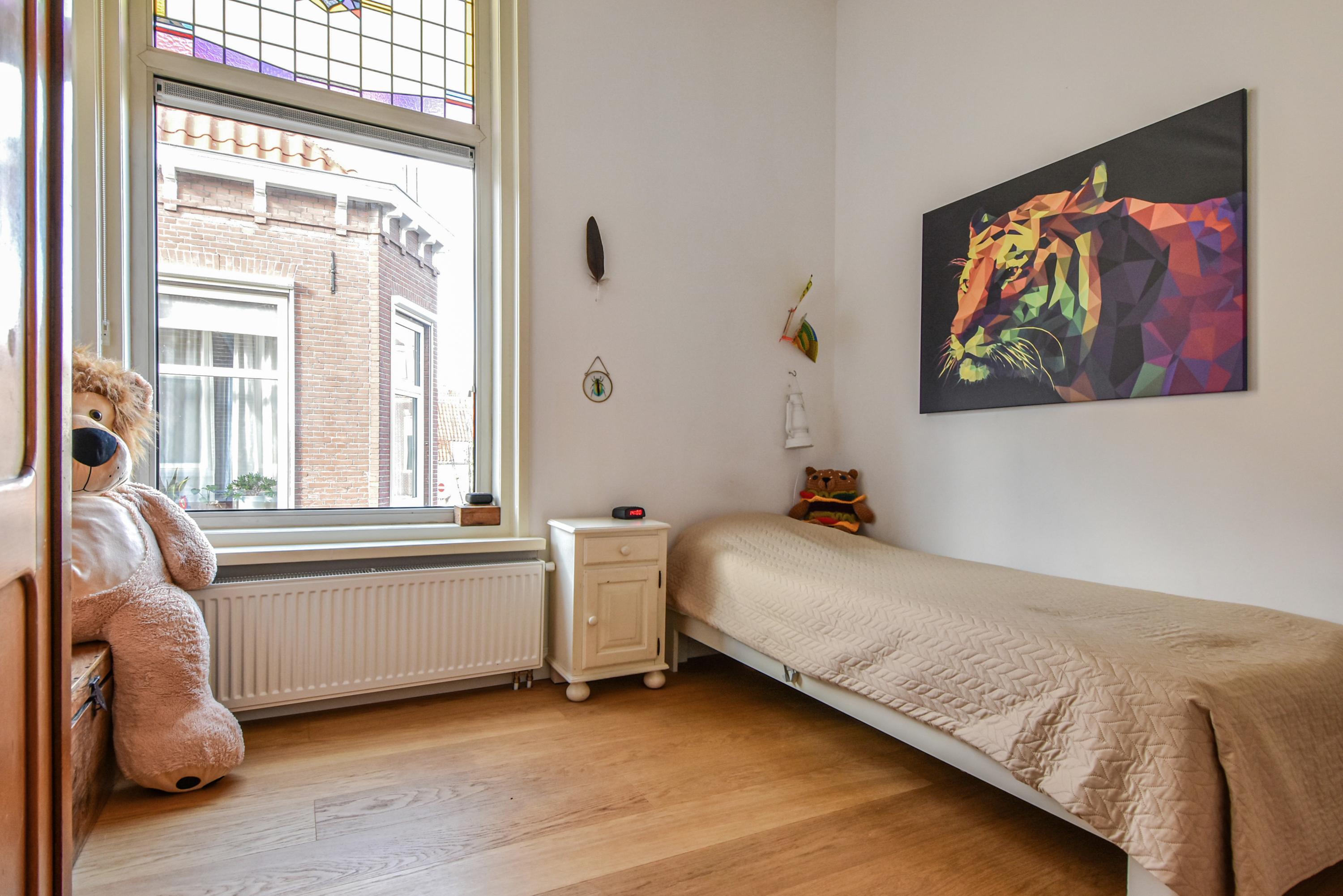 The second floor is surprisingly spacious. A long hallway with built-in cupboards and characteristic antique doors provides access to 3 more bedrooms. At the front, there is a large room with a skylight, dormer window, and open roof where the original beam structure is visible. The second bedroom features a tall dormer with an authentic hoisting beam, while at the rear there is another pleasant bedroom with dormer and skylight, offering views of Delft’s church towers. The luxurious bathroom is fully equipped with a bathtub, walk-in shower, fourth toilet, designer washbasin unit, and towel radiator.