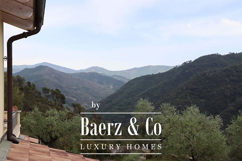 Both main buildings are equipped with solar panels, integrating eco-conscious technology into the tranquil pace of rural life. The expansive 12,000 m² garden features a bio-swimming pool designed to preserve the environment, crafted from quartz sand and resin. This country house for sale in Dolceacqua harmonizes hospitality and seclusion, offering a rare Ligurian retreat for those seeking authenticity and quiet grandeur.