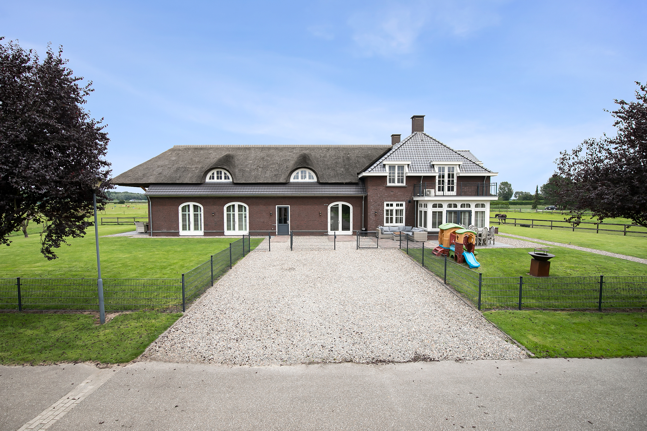 This beautiful, complete and well-maintained equestrian accommodation offers plenty of possibilities due to the presence of a beautiful luxuriously finished detached house, a total of 39 horse stables, a spacious indoor and outdoor arena (approx. 21x61 metres), a reception area, two flats which are perfect for groom's quarters, a covered horse walker and various meadows. All this is situated on a generous plot of no less than 4 ha in an excellent, central location in the middle of the Netherlands.
