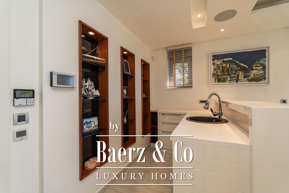 Arranged over five floors, the residence offers two living rooms, a dining area and kitchen, five bedrooms with en suite bathrooms, and a private study. Wellness spaces include a sauna and a gym, while the roof terrace features a jacuzzi that looks across the bay. A wine cellar and a separate service apartment round out the ensemble. The villa’s 417m² plot, with its swimming pool and tranquil woodland surrounds, ensures privacy. Access to a nearby public garage with annual subscriptions supports a lifestyle that is both secluded and urban, anchored by the timeless charm of Dubrovnik.