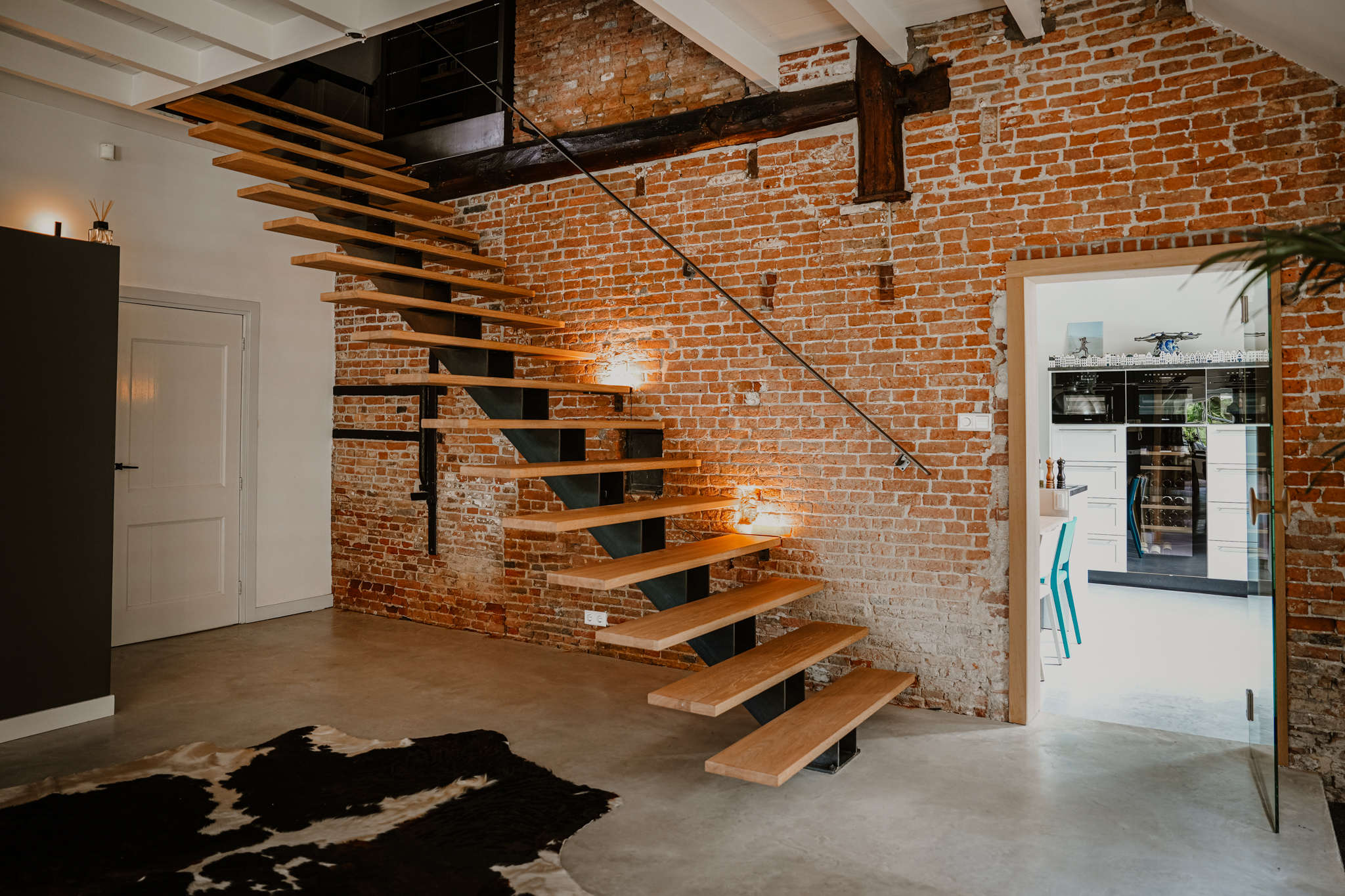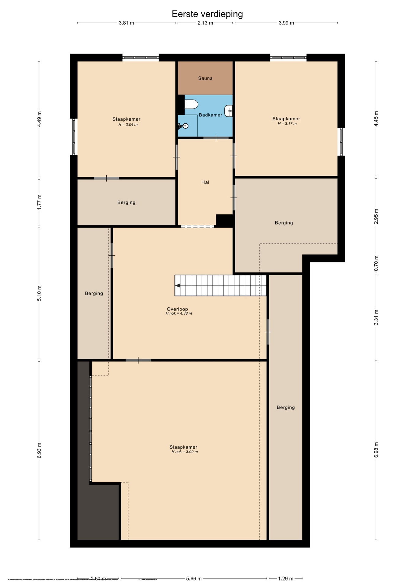 Three bedrooms, a second bathroom with sauna and ample storage space on the first floor.