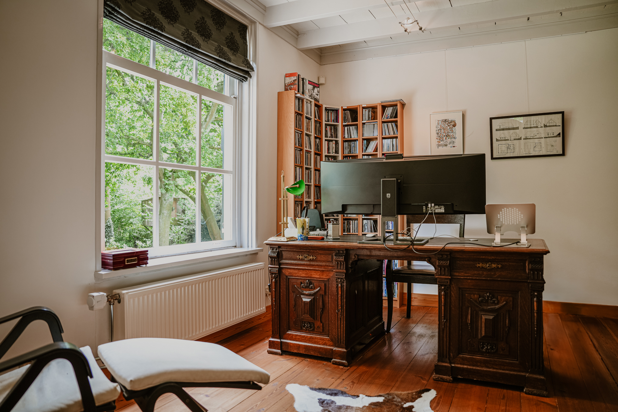 Impressive, garden-oriented living room, a luxuriously fitted kitchen with fireplace and wood-burning stove, a cosy sitting room, a study above the wine cellar and a spacious bedroom with wardrobe and comfortable bathroom on the ground floor.