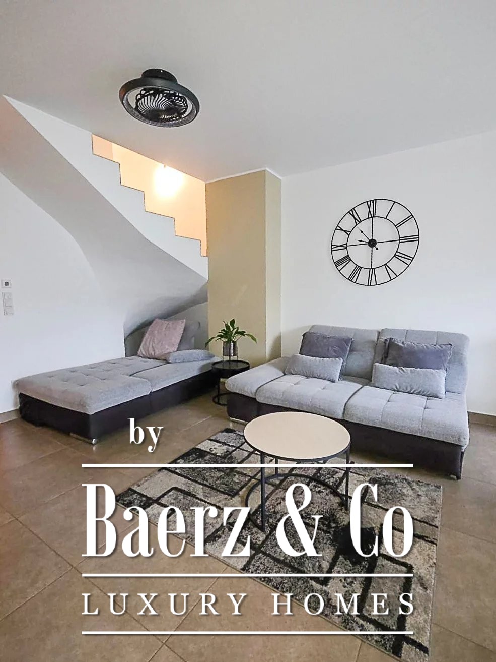 Entrance hall, separate toilet, fitted kitchen, living room, garage and terrace with garden to enjoy sunny days.