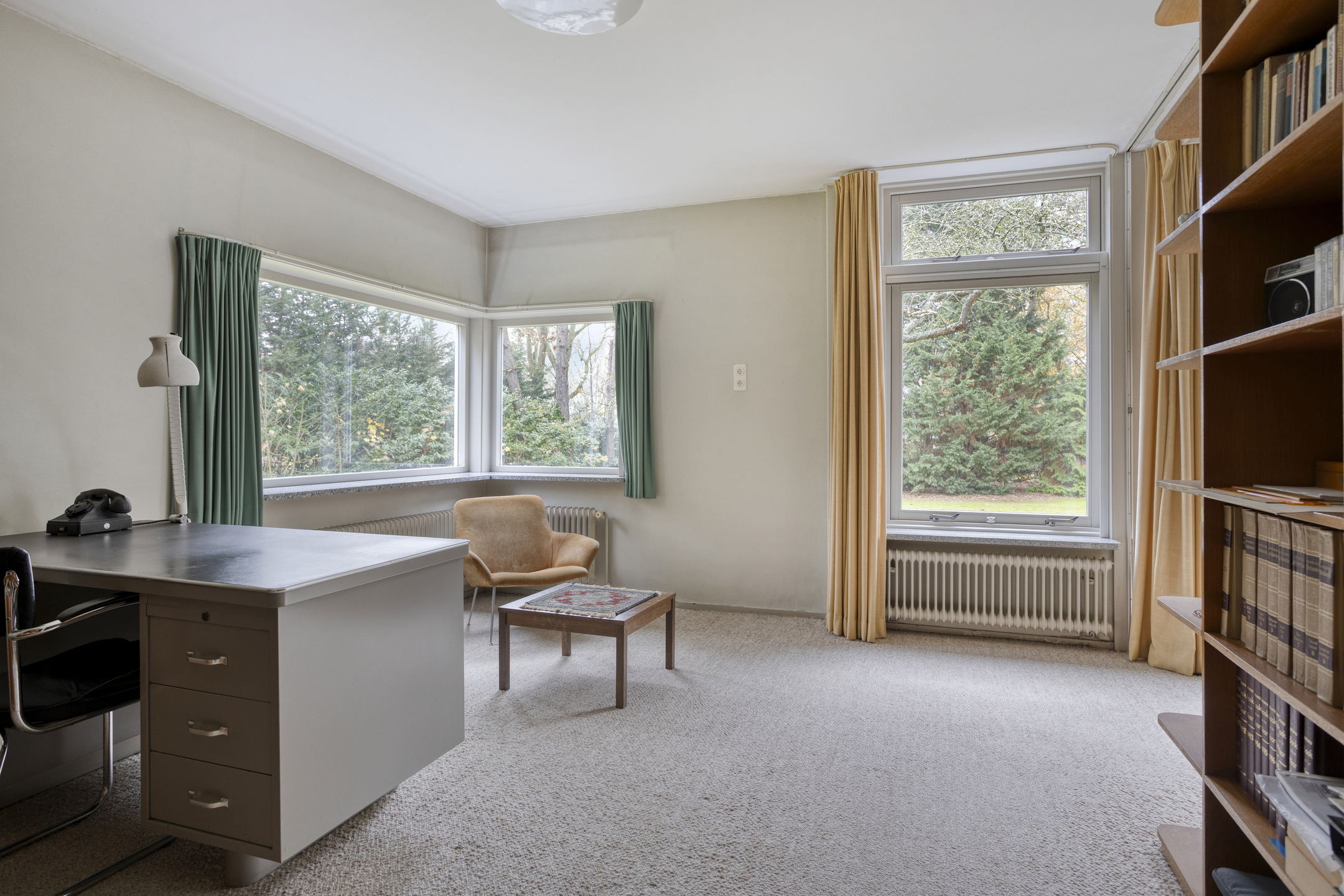 Study, plastered walls, carpeted floor, plastered ceiling;