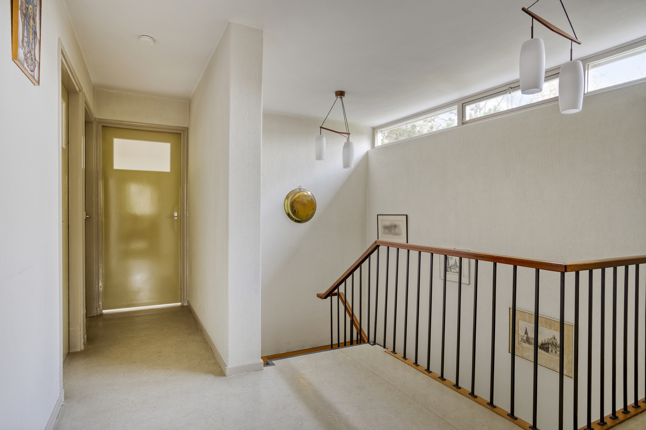 Landing, plastered walls, linoleum flooring, plastered ceiling;