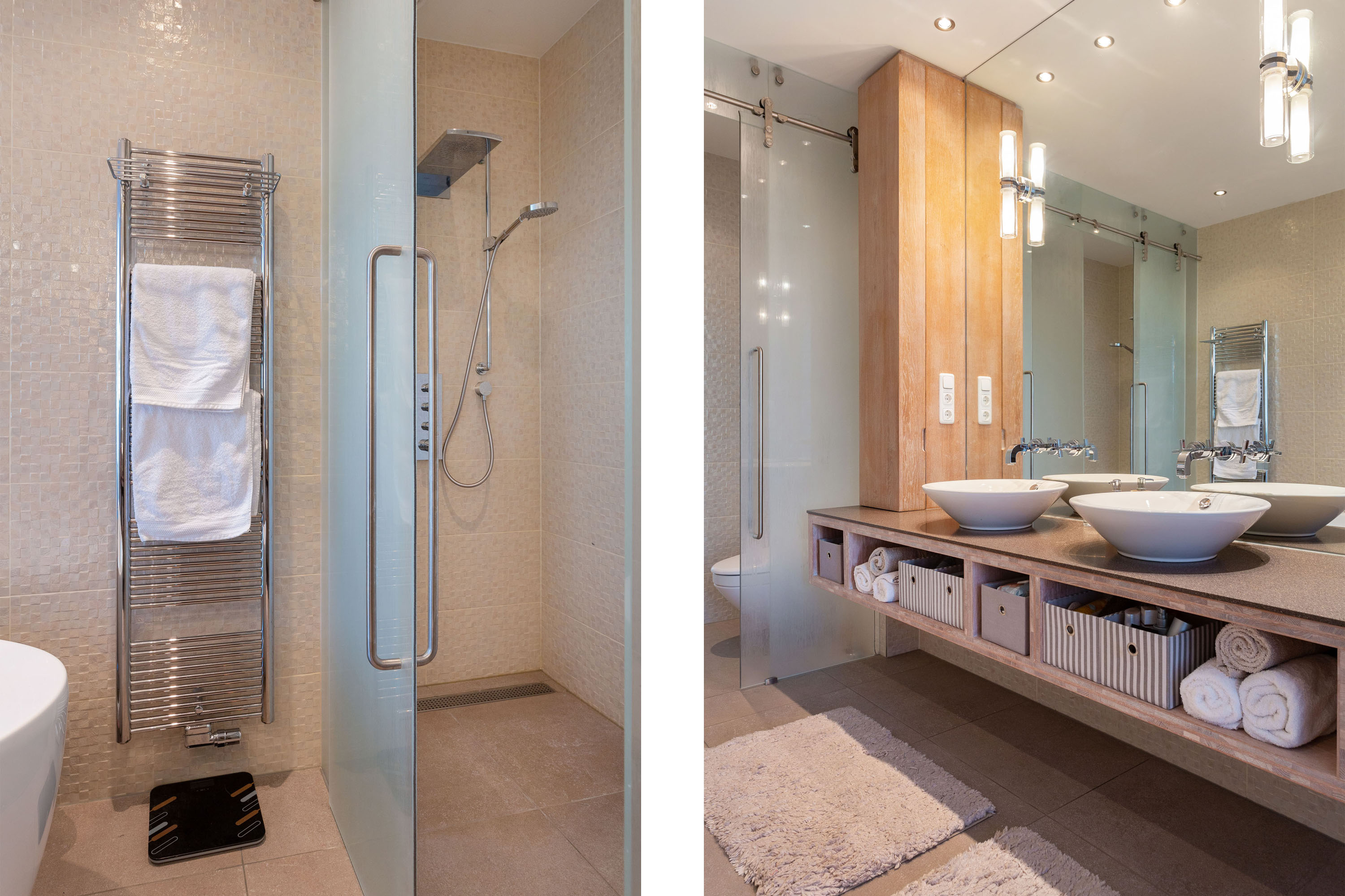 A spacious 2nd large bathroom with bath, shower, radiator, underfloor heating, 2 washbasins, separate toilet, bidet and enclosed laundry room is also located on the first floor.