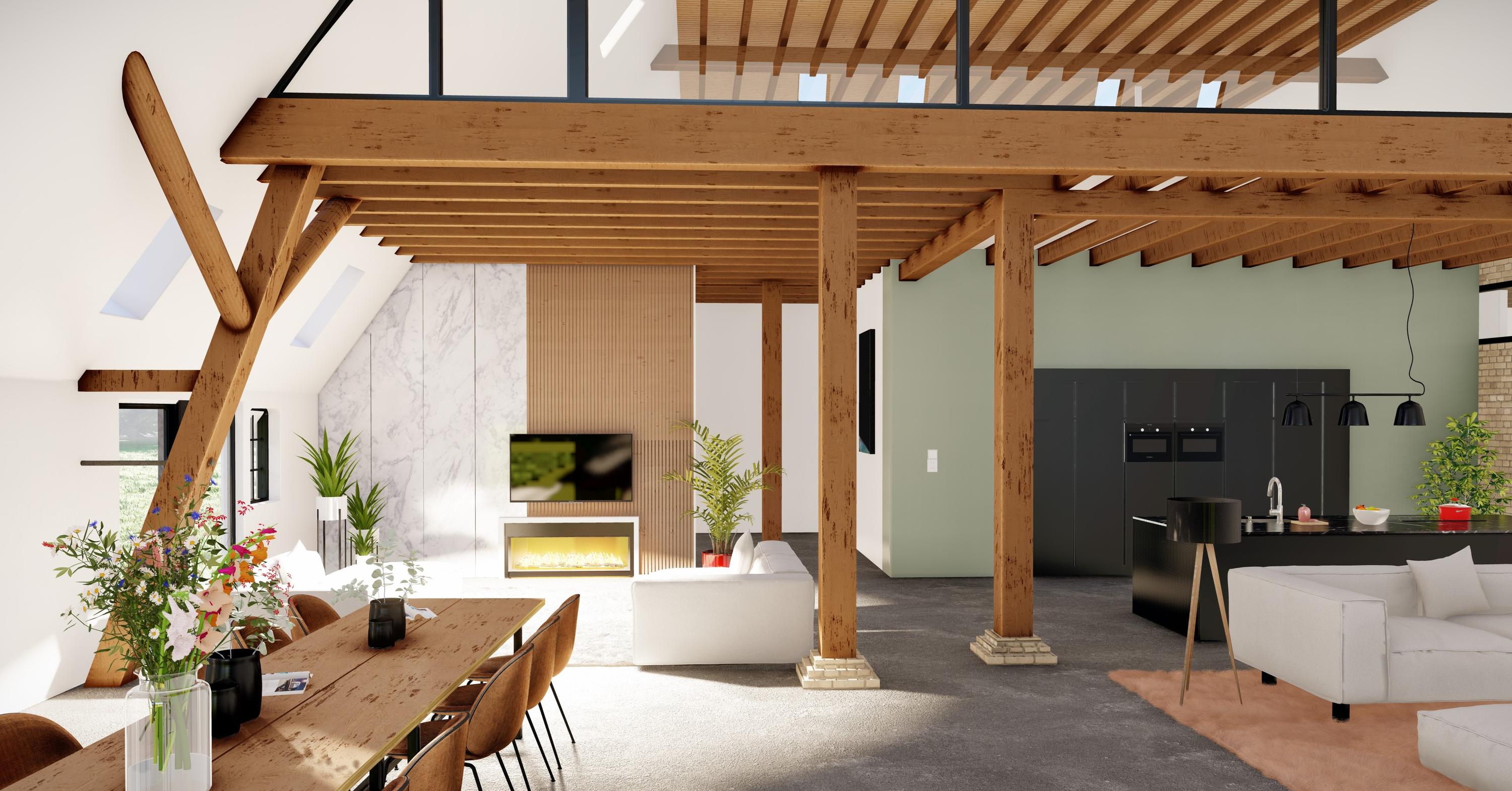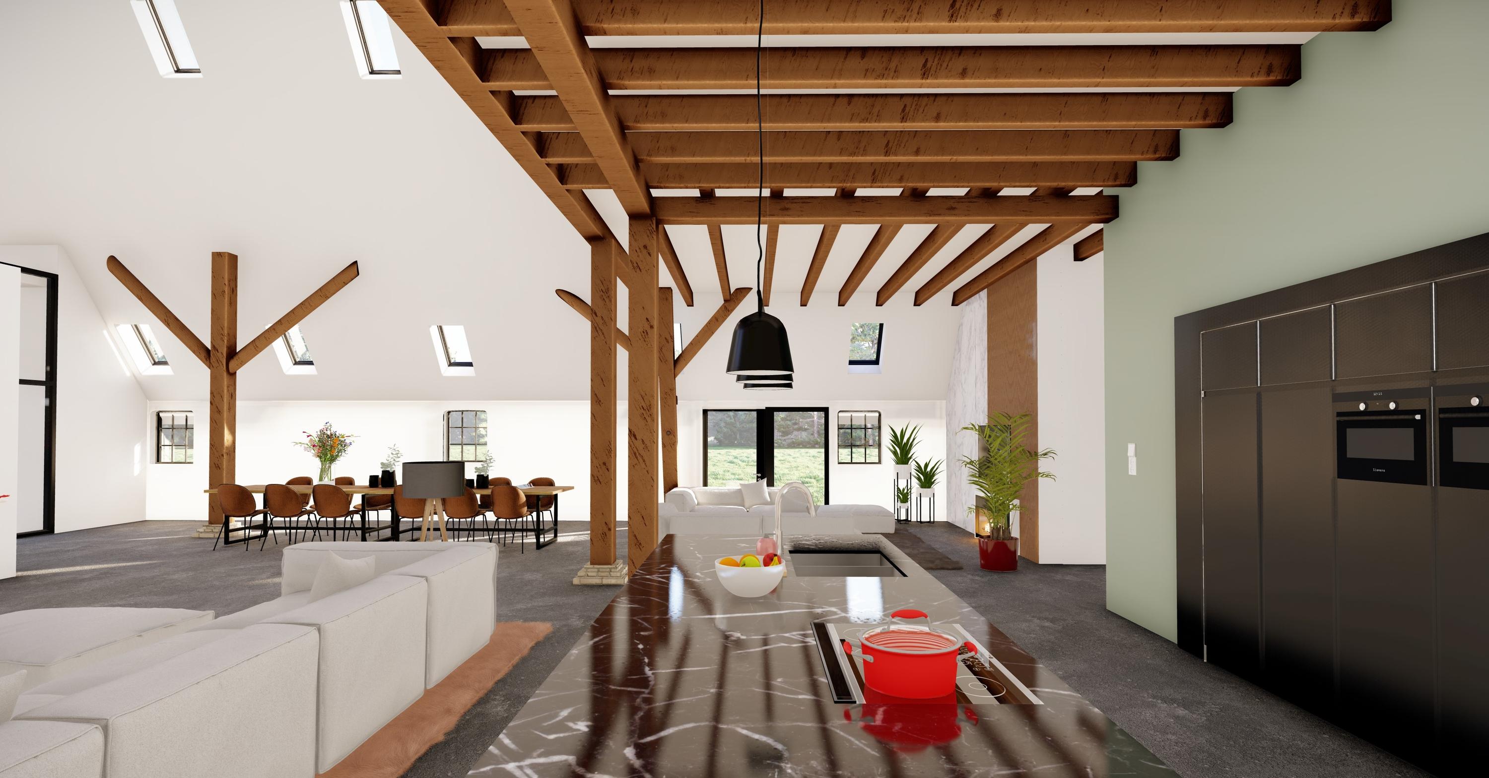 It is quite easy to transform the barn or just the ground floor into a fully independent home for a large family. See our artist impressions.