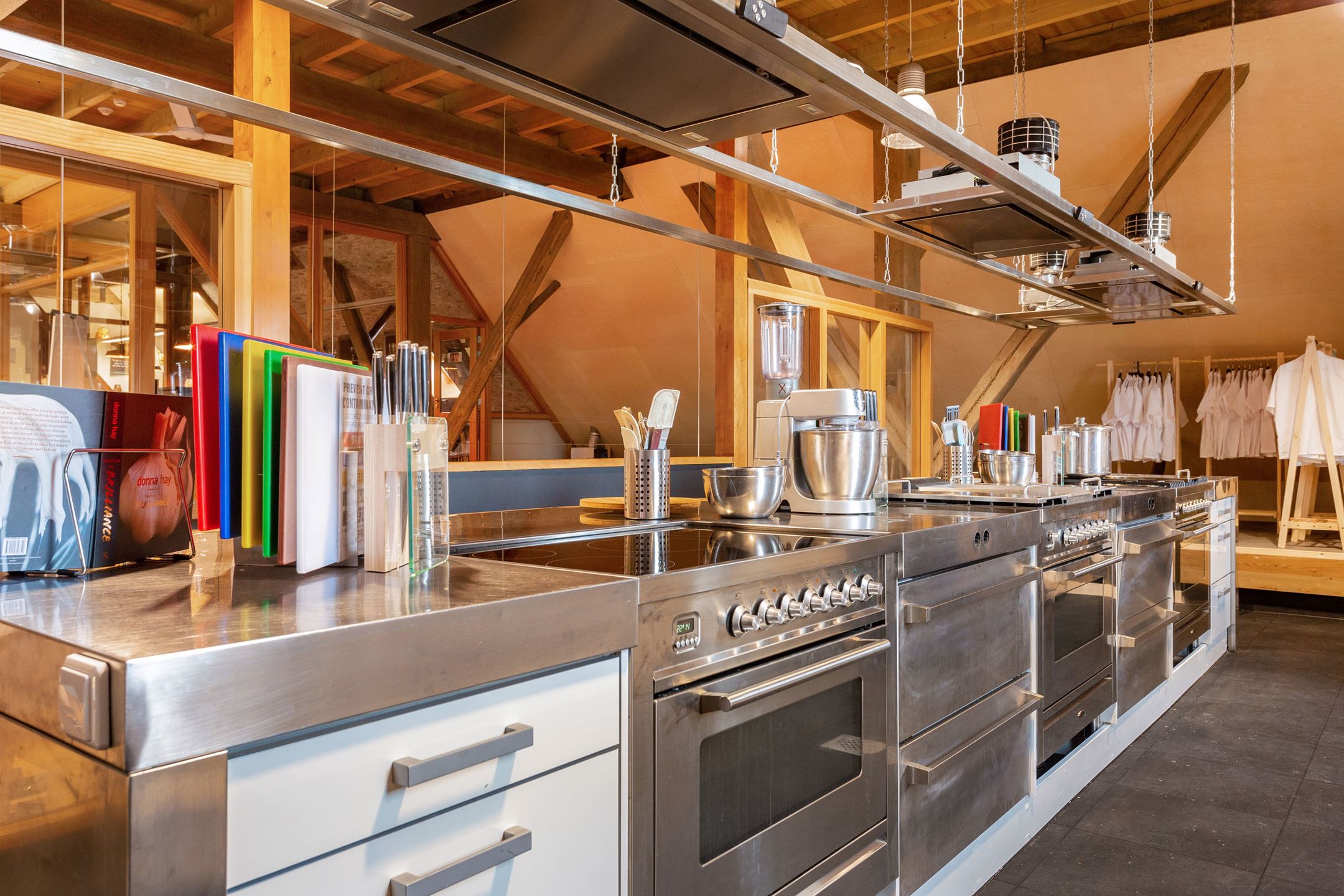 Via two staircases you can reach the 1st floor of the barn where you will also notice the beautiful old wooden trusses and the modern and attractively panelled ridge. This floor has 3 large multifunctional rooms, a large entertainment room with loft, a cozy bar and a professional cooking studio.