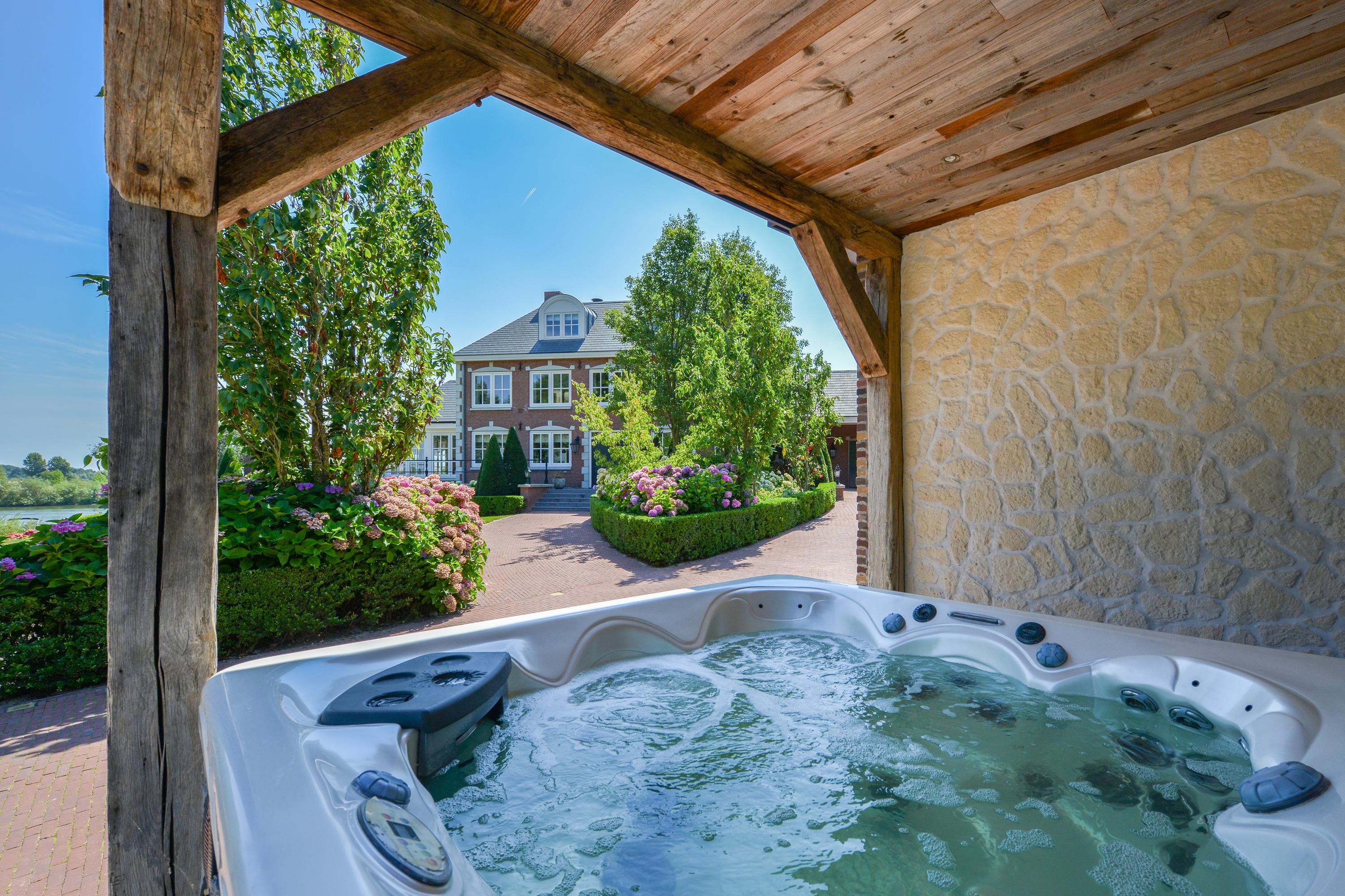 This well-maintained countryhouse with a full basement enjoys a magnificent location on the river. In addition to the five bedrooms and three bathrooms, there is an outdoor kitchen and a fully equipped poolhouse with 4th bathroom, jacuzzi, sauna and heated heated pool. From the architecturally designed plot there is direct access to the private jetty.