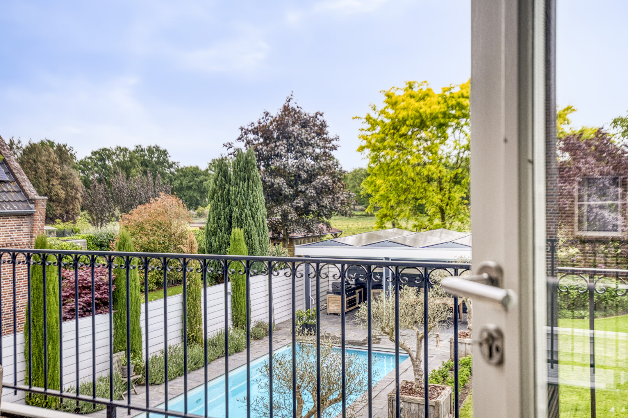 De fraai aangelegde achtertuin biedt ultieme privacy en een prachtig vrij uitzicht over aangrenzende weilanden waar regelmatig paarden grazen, een plaatje dat nooit verveelt. Meerdere terrassen zorgen ervoor dat u de hele dag door kunt kiezen tussen zon of schaduw.