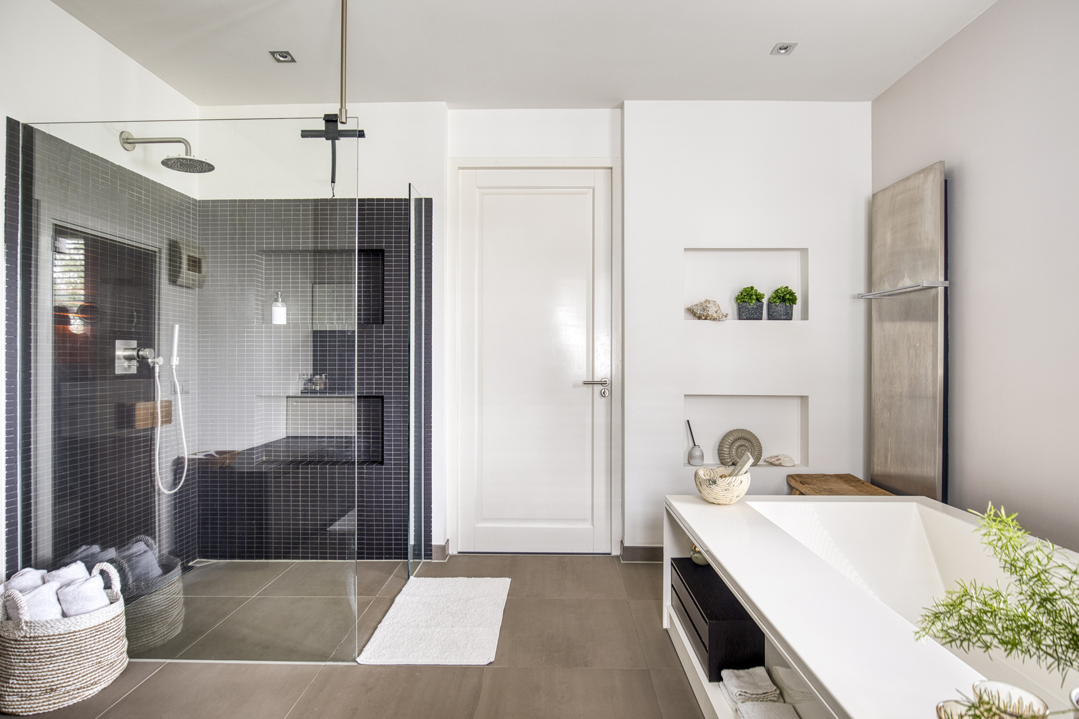 Bij binnenkomst valt direct de imposante entree op: licht en ruimte komen u tegemoet, een voorbode van wat deze villa te bieden heeft. De halfopen living vormt het hart van het huis, met prachtig zicht op de tuin en openslaande deuren naar het terras.