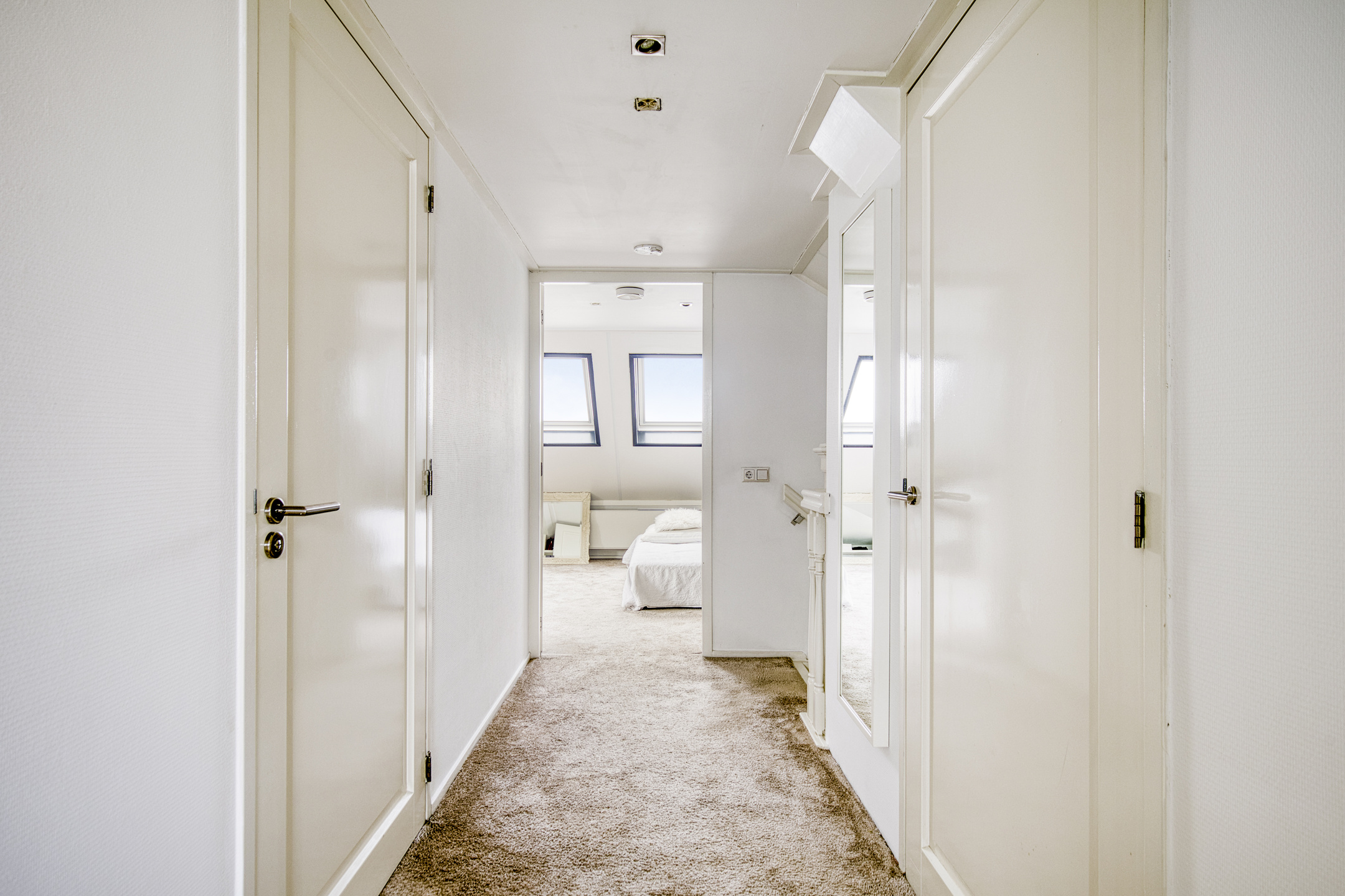 Overloop voorzien van een bergkast vv. opstelplaats HR-combiketel en 2-tal WTW-units, wandafwerking stucwerk, vloer afgewerkt met tapijt, plafond afgewerkt met stucwerk vv. inbouwspots