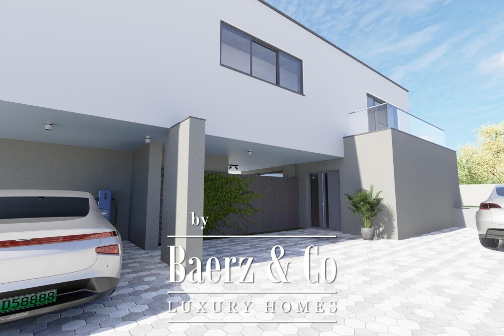 Materials—stone wool insulation, aluminum joinery, and glass balustrades—contribute both to performance and visual clarity. Three open parking spaces and a covered bay equipped with an EV charging station and surveillance add convenience and security. Horticultural landscaping will frame the villa’s contours upon completion, expected by April 2025, inviting bespoke interior choices.
