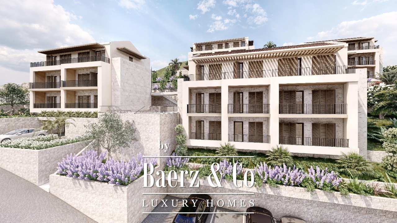 The building has 3 floors, while the apartment is on the 2nd floor. This apartment complex has 2 salt water pools. There is a berth for a boat that is 70m2 away from the building. Each apartment has its own parking spot, and also, there is a n option of buying a garage spot for 20 000e. There are 4 buildings that have 3 floors in this apartment complex and each one has 5 apartments. This building will be finished in June 2026.