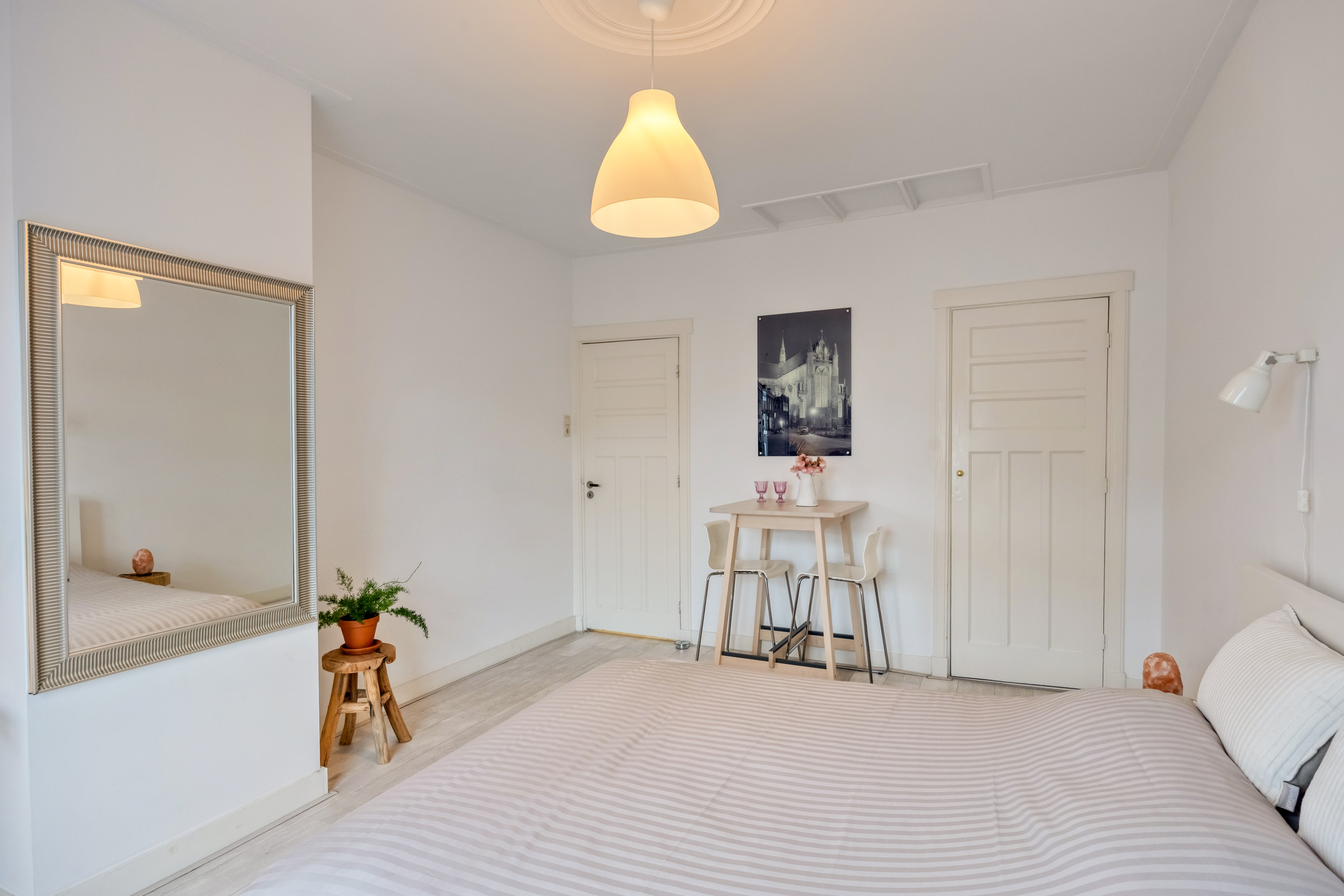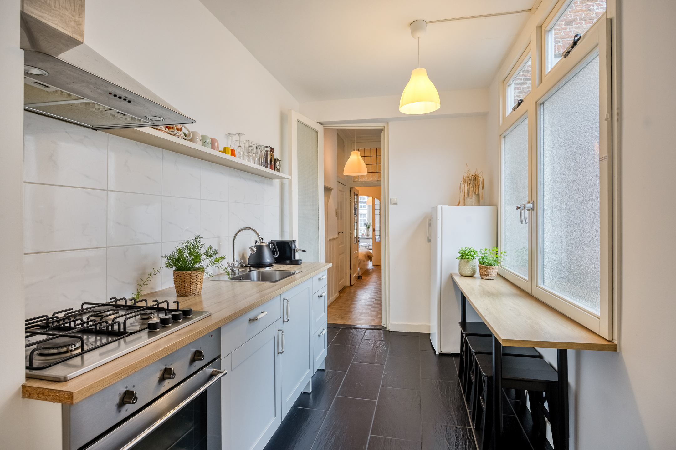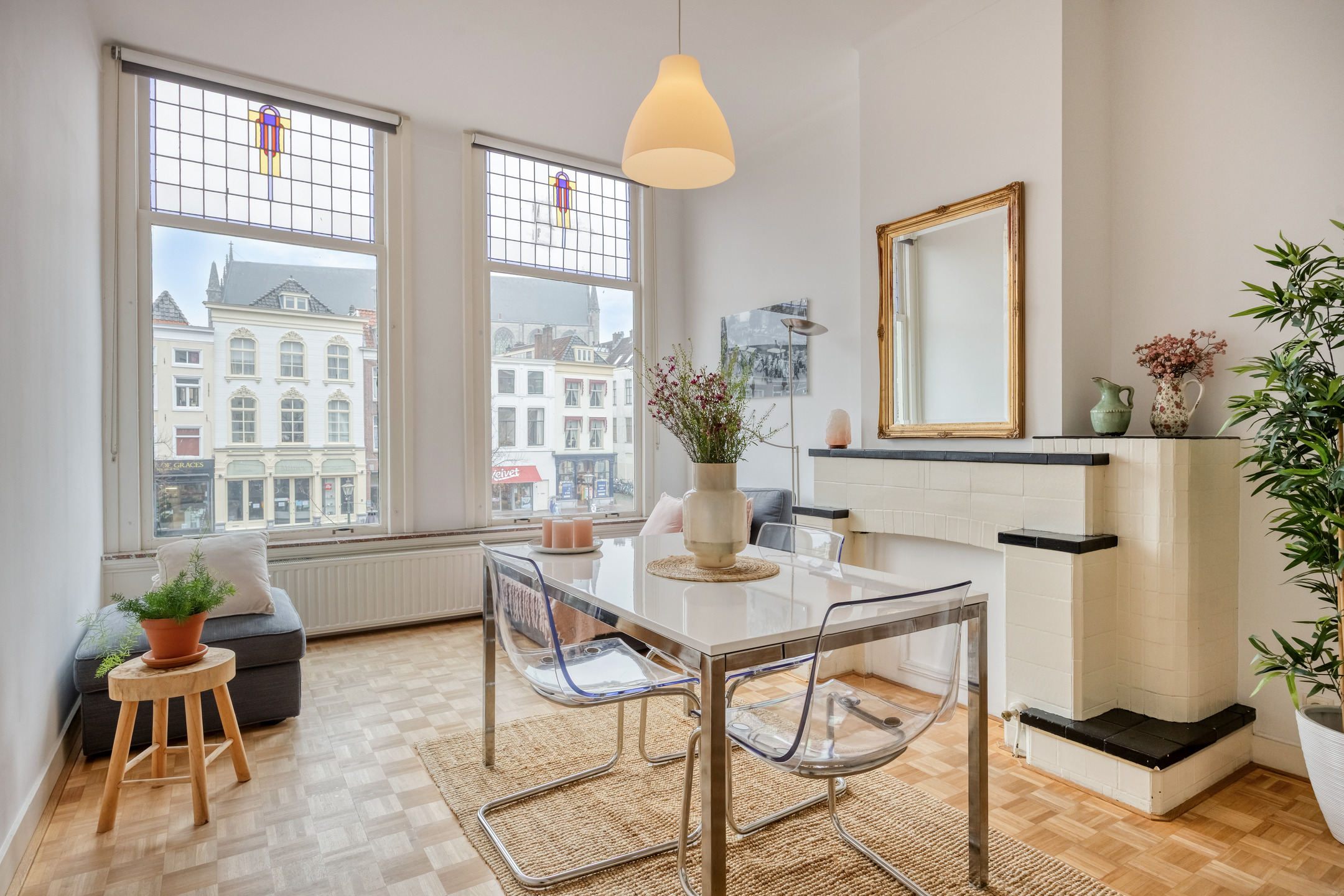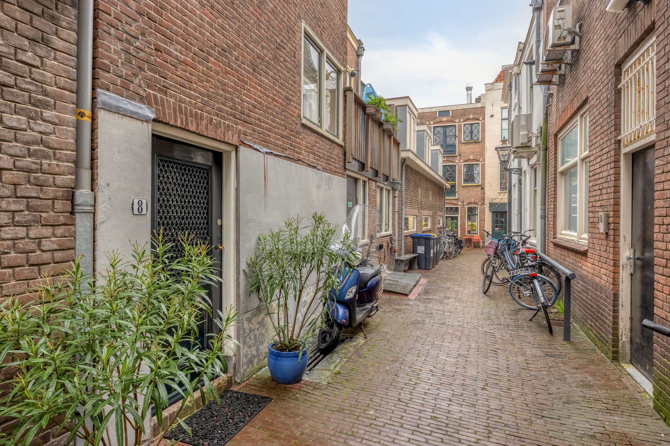 Tucked away in an alley between Breestraat and Botermarkt lies the entrance to this unique home. From the street, it is difficult to guess what you will find behind the front door, but once inside, you will be surprised by the light, the space, and the pleasant layout.