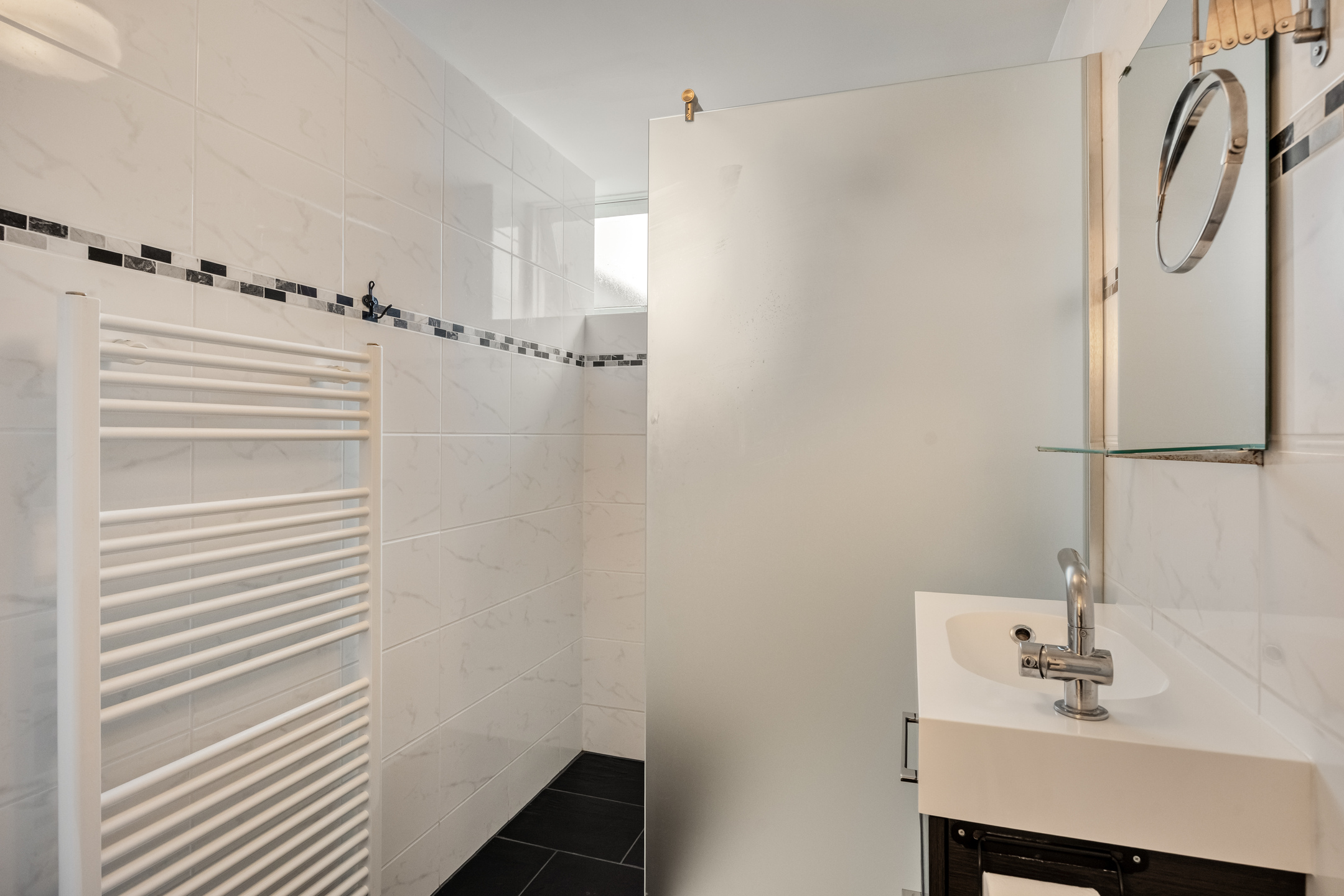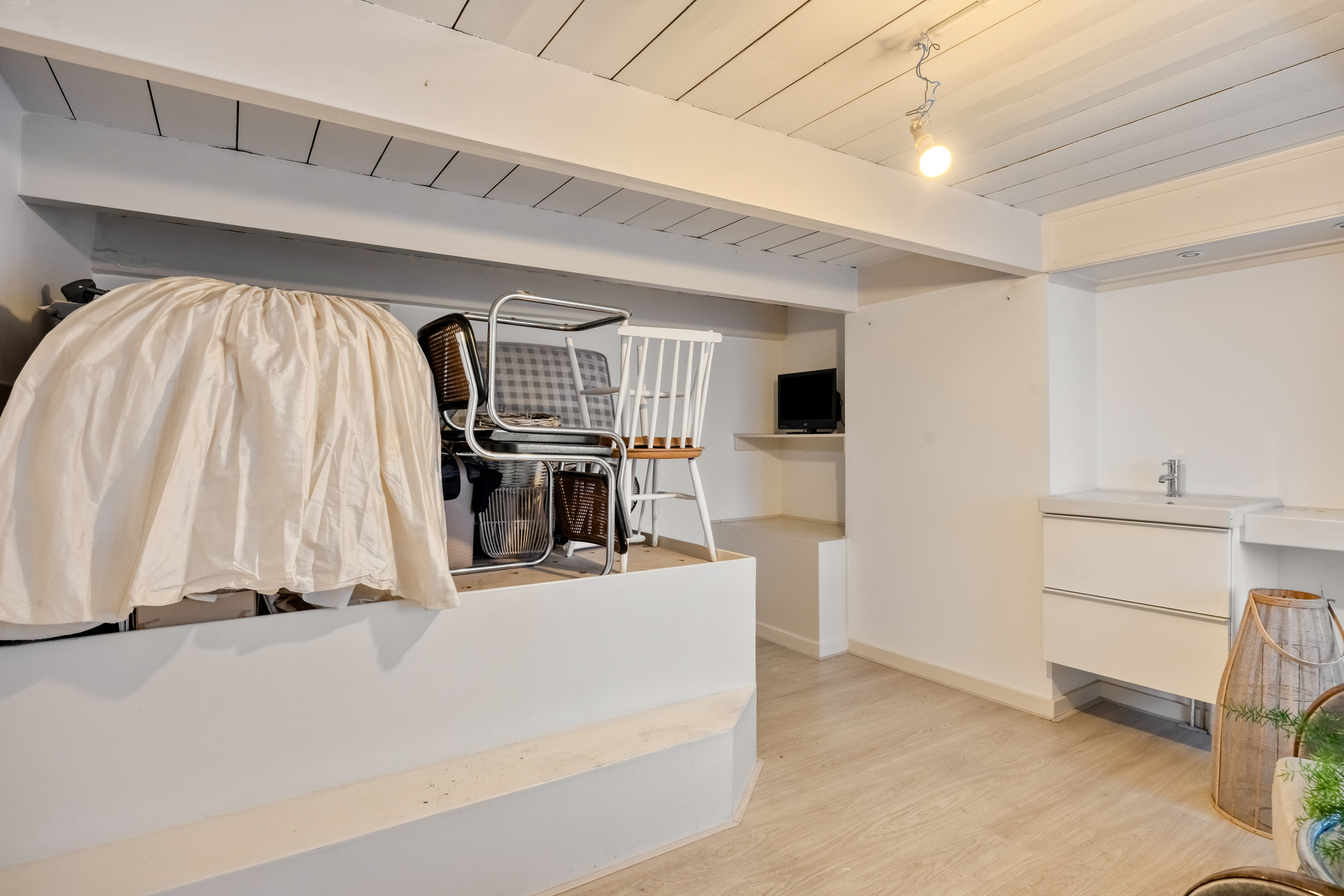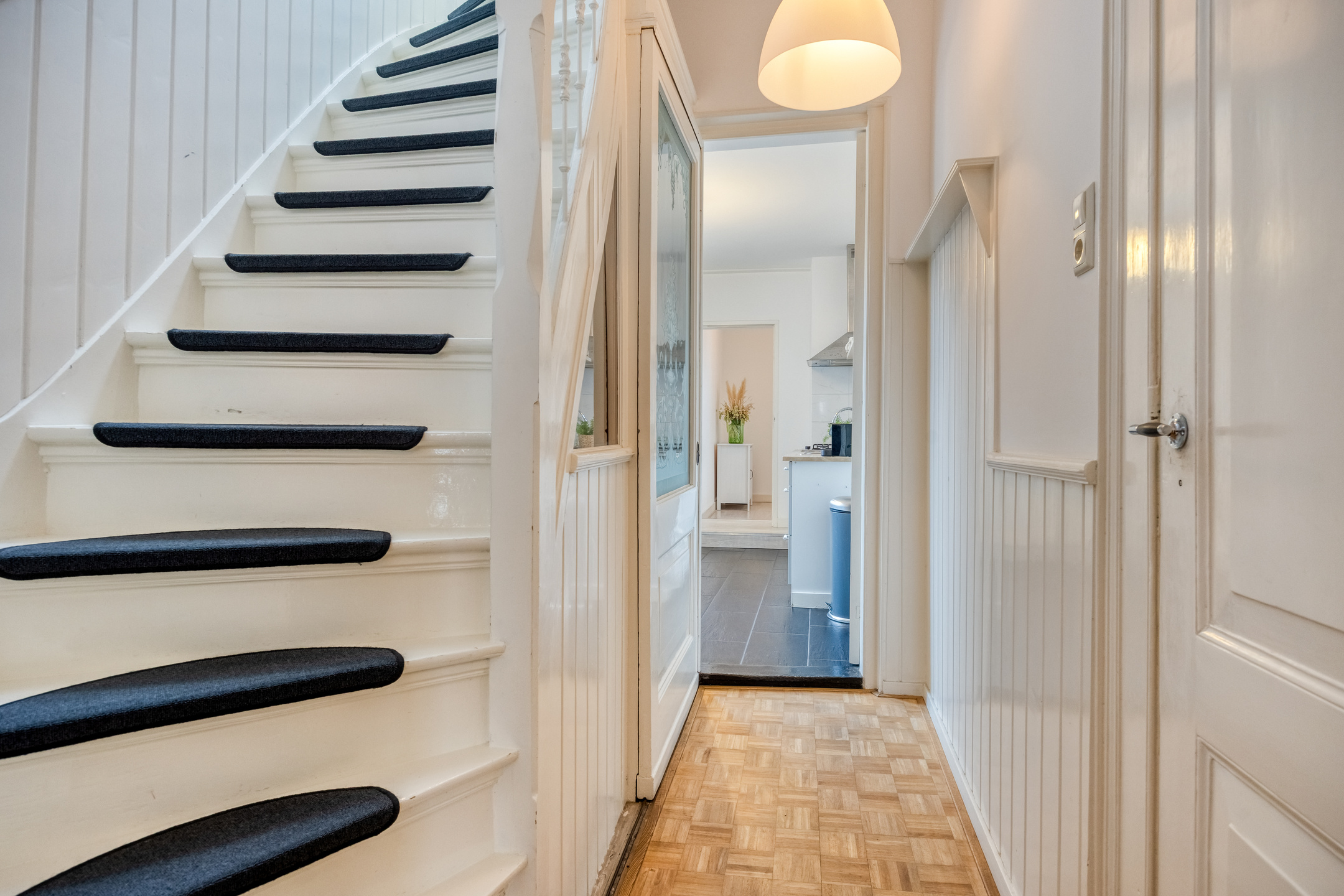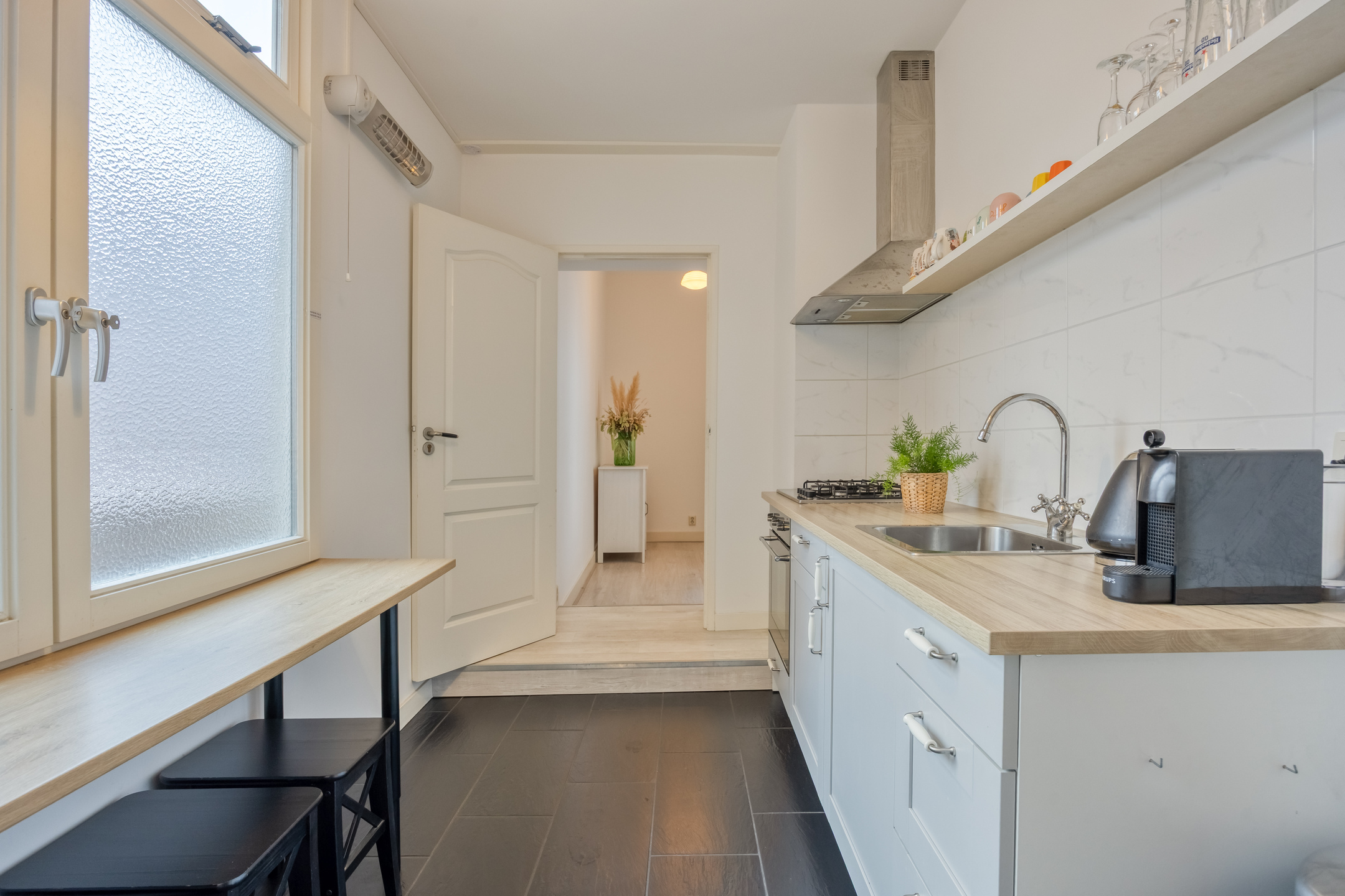Tucked away in an alley between Breestraat and Botermarkt lies the entrance to this unique home. From the street, it is difficult to guess what you will find behind the front door, but once inside, you will be surprised by the light, the space, and the pleasant layout.