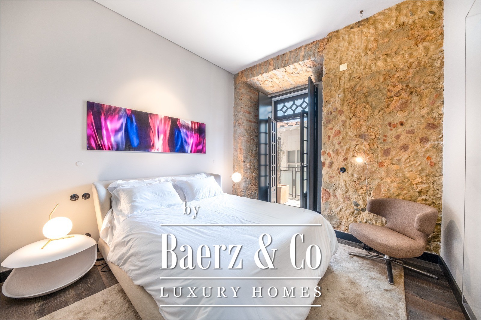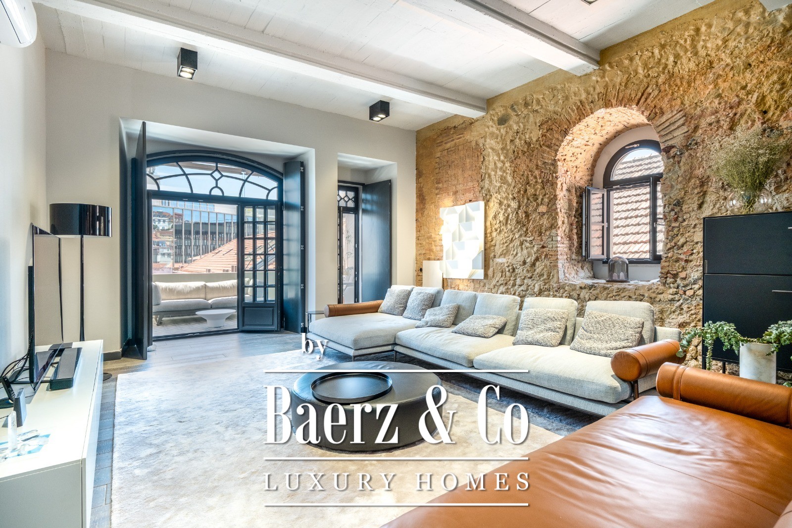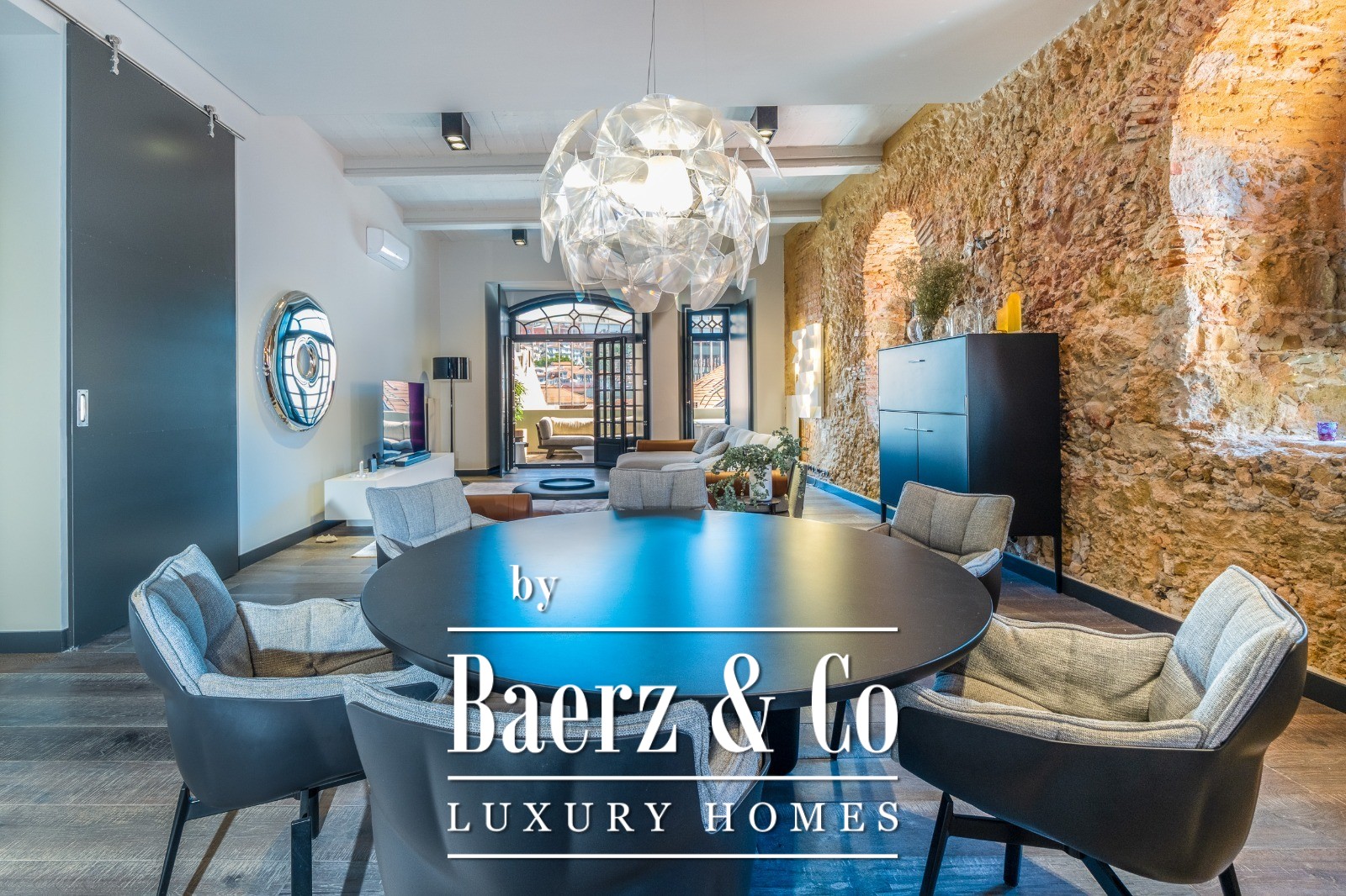 Located on a quiet cul-de-sac in Cais do Sodré, one of Lisbon’s most vibrant and historic neighborhoods, this 173 m² two-bedroom apartment offers a loft-style design with a distinct contemporary touch. Set on the second floor of a 19th-century building with elevator access, it underwent a full renovation in 2019 with meticulous attention to detail and high-quality materials.The generous living area impresses with 3.7 m high ceilings, a striking 14 m exposed stone wall, and large arched windows that fill the space with natural light thanks to its south and east orientation. The kitchen is seamlessly integrated with the living room, combining design and functionality with stainless steel countertops, oak cabinetry, and statement lighting.The living experience extends
