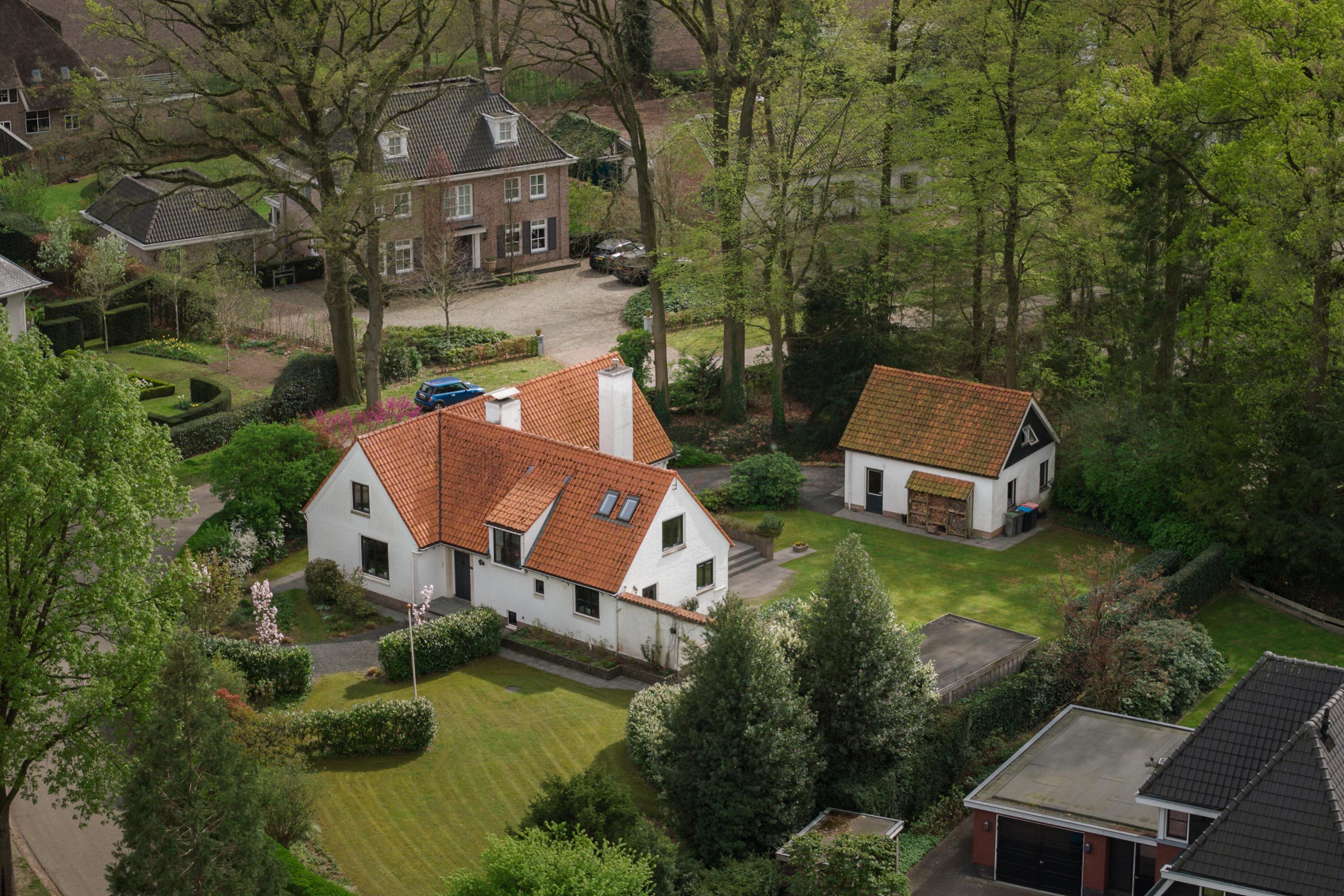Space is in abundance, as the property sits on a generous plot of approximately 1,755 m². At the front is a charming garden with a characteristic semi-circular driveway. Beside the house stands a spacious, detached brick garage with cavity walls and an upper floor—ideal for parking a classic car, storing bicycles and accommodating a workbench. The upper level offers excellent potential for creating an artist’s studio or hobby space.