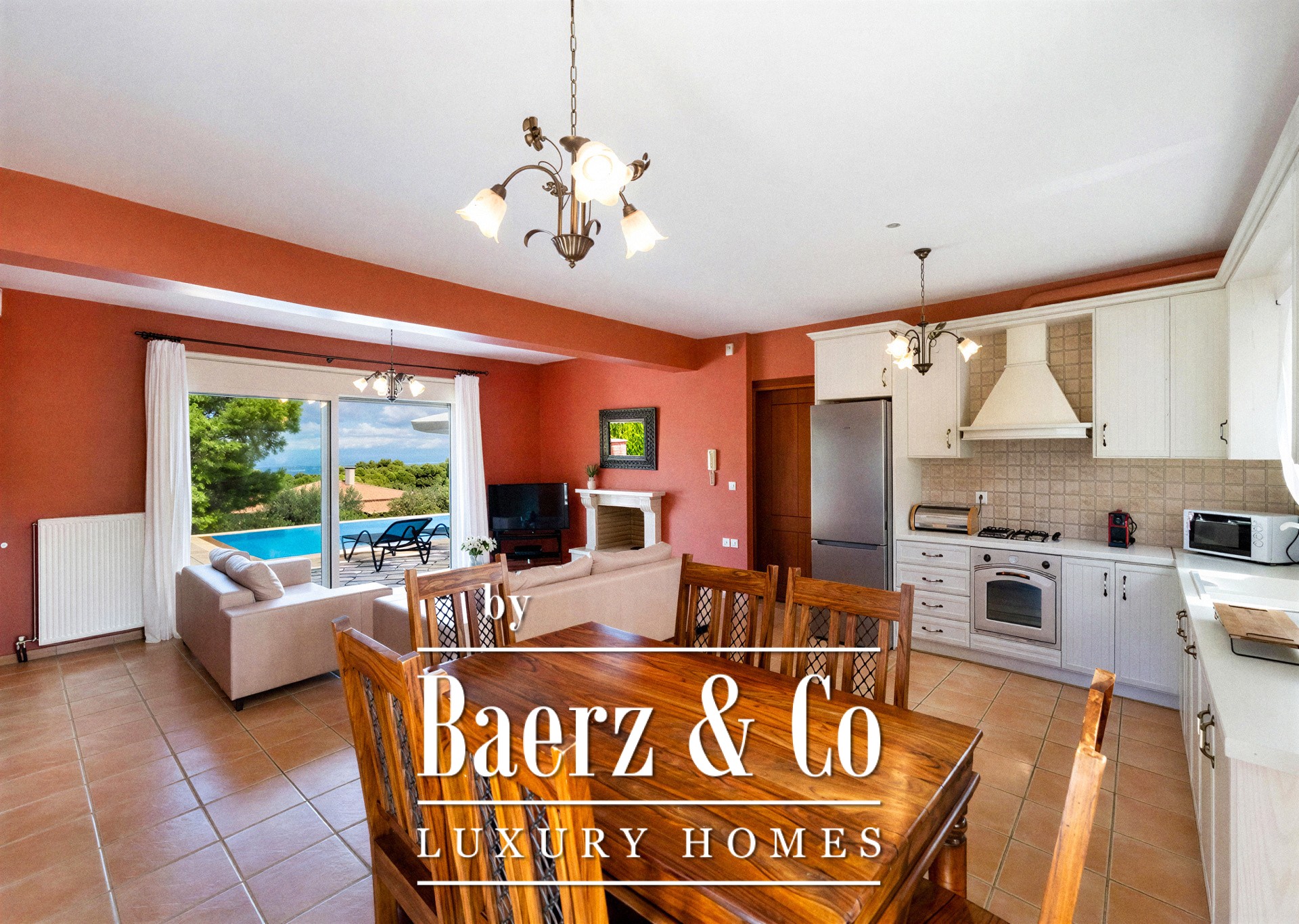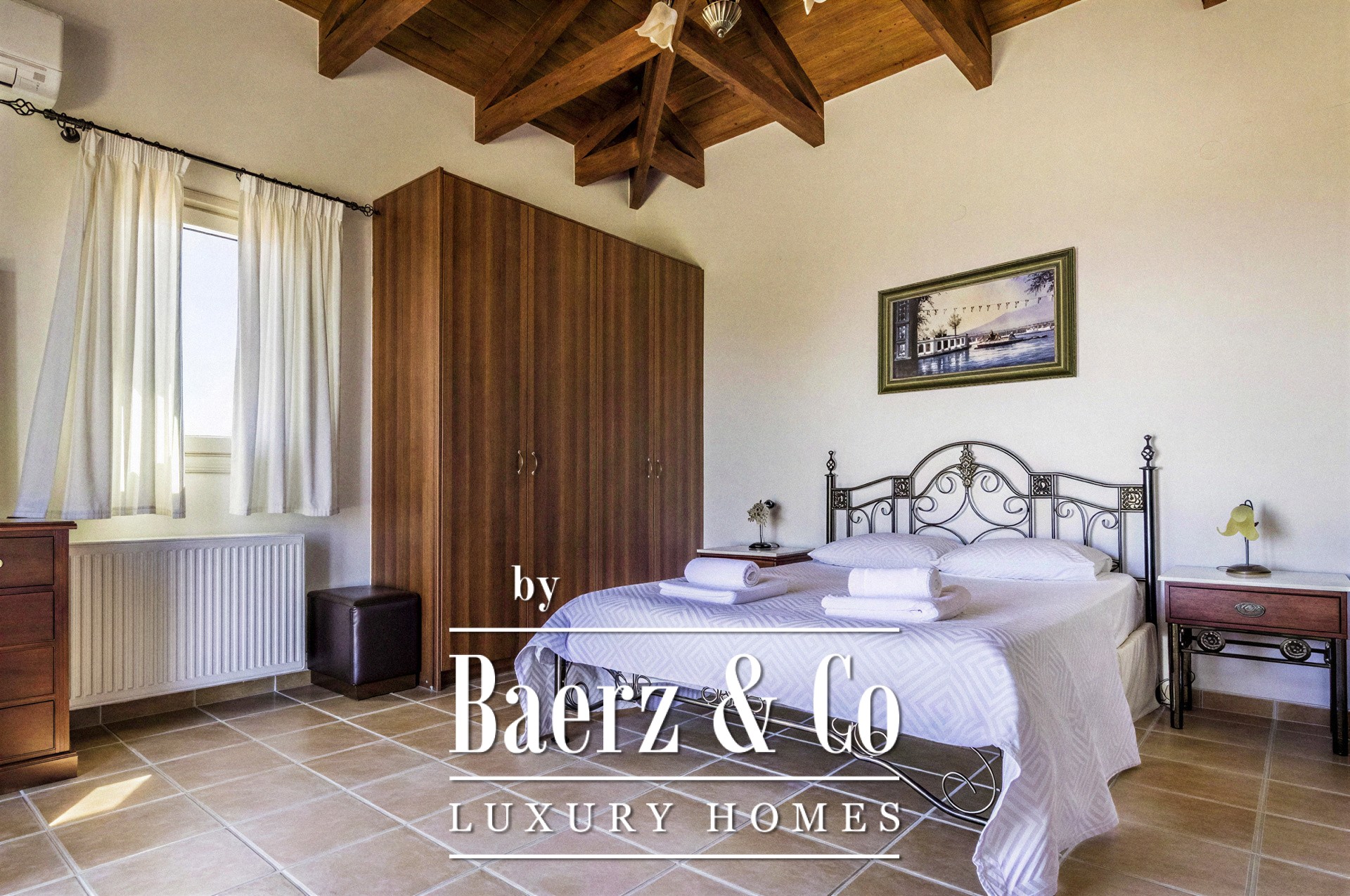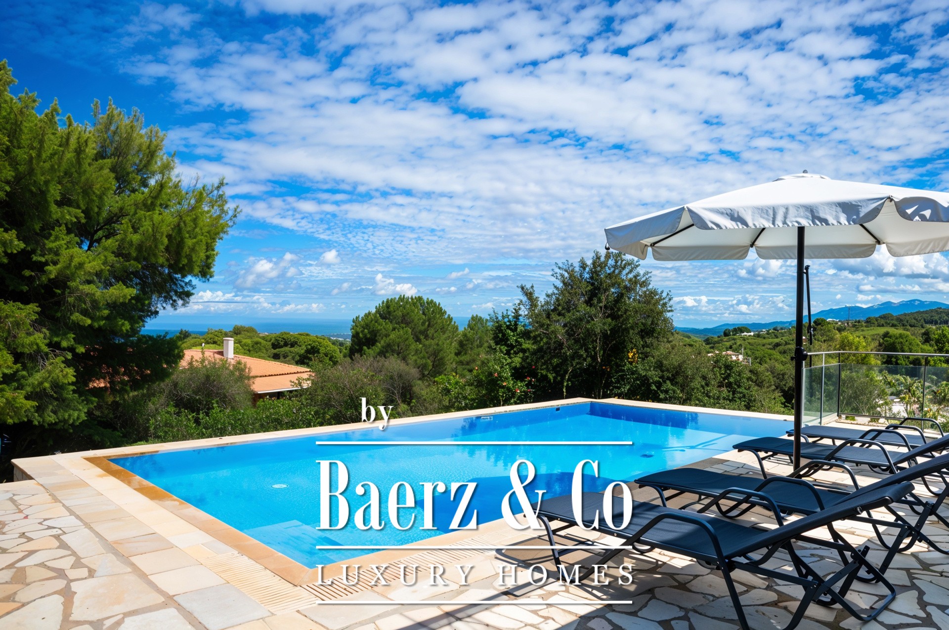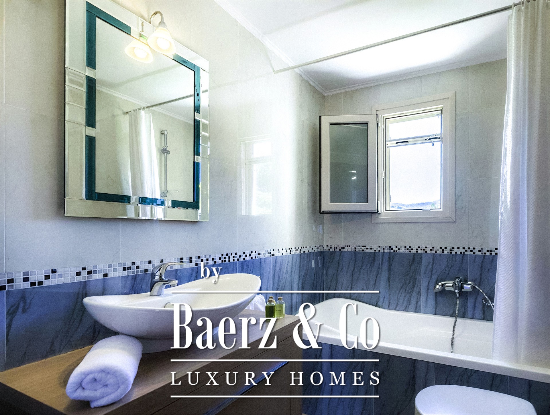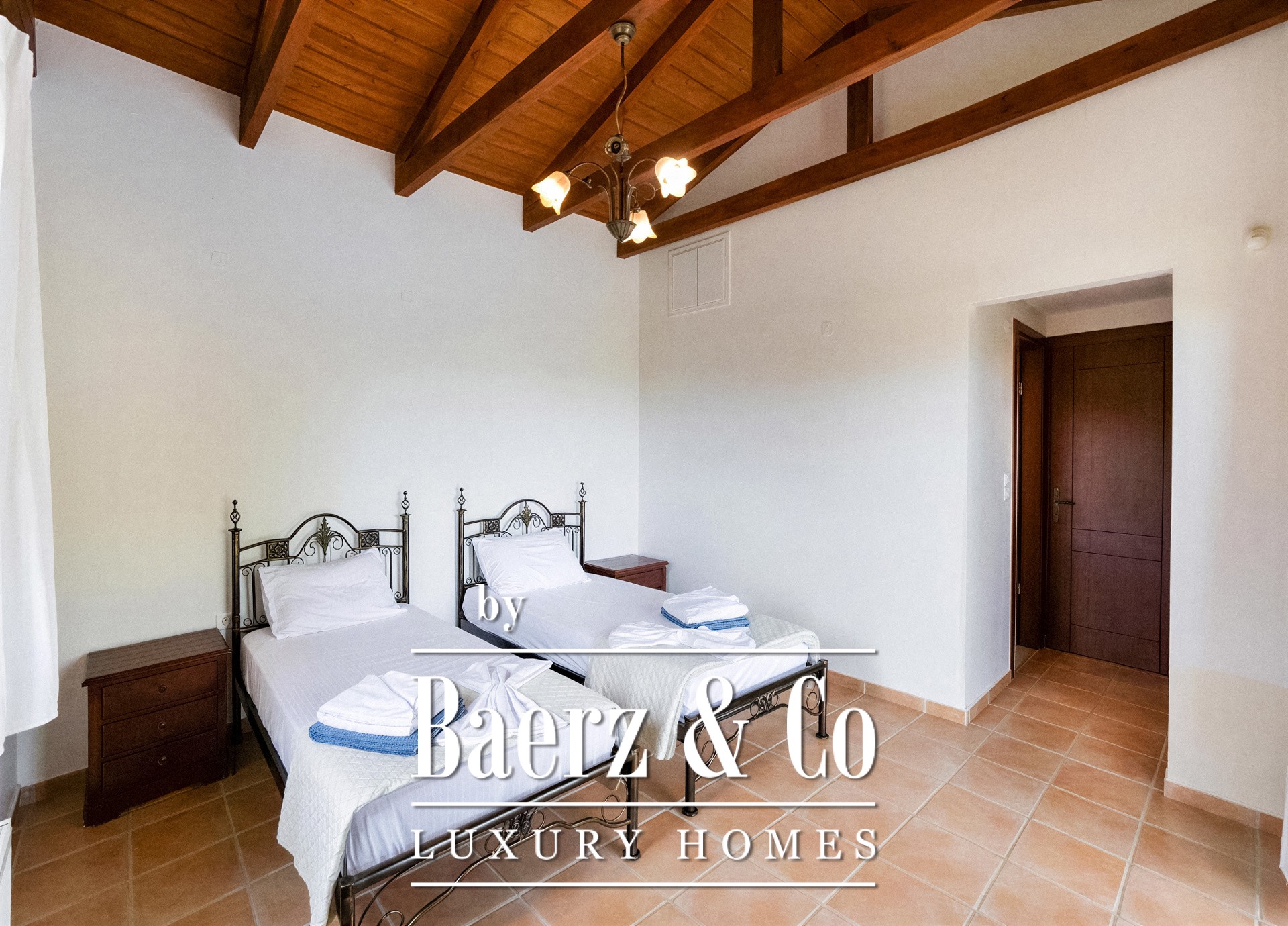 Outdoors, the meticulously landscaped space is anchored by rich gardens, olive trees, expansive lawns, and two private 32 m² infinity pools, each complemented by dedicated BBQ zones and paved terraces. The property includes six parking spaces and is presented in excellent condition, making it a compelling choice for those pursuing a private holiday retreat, an investment in the short-term rental market, or a pathway to a Golden Visa.