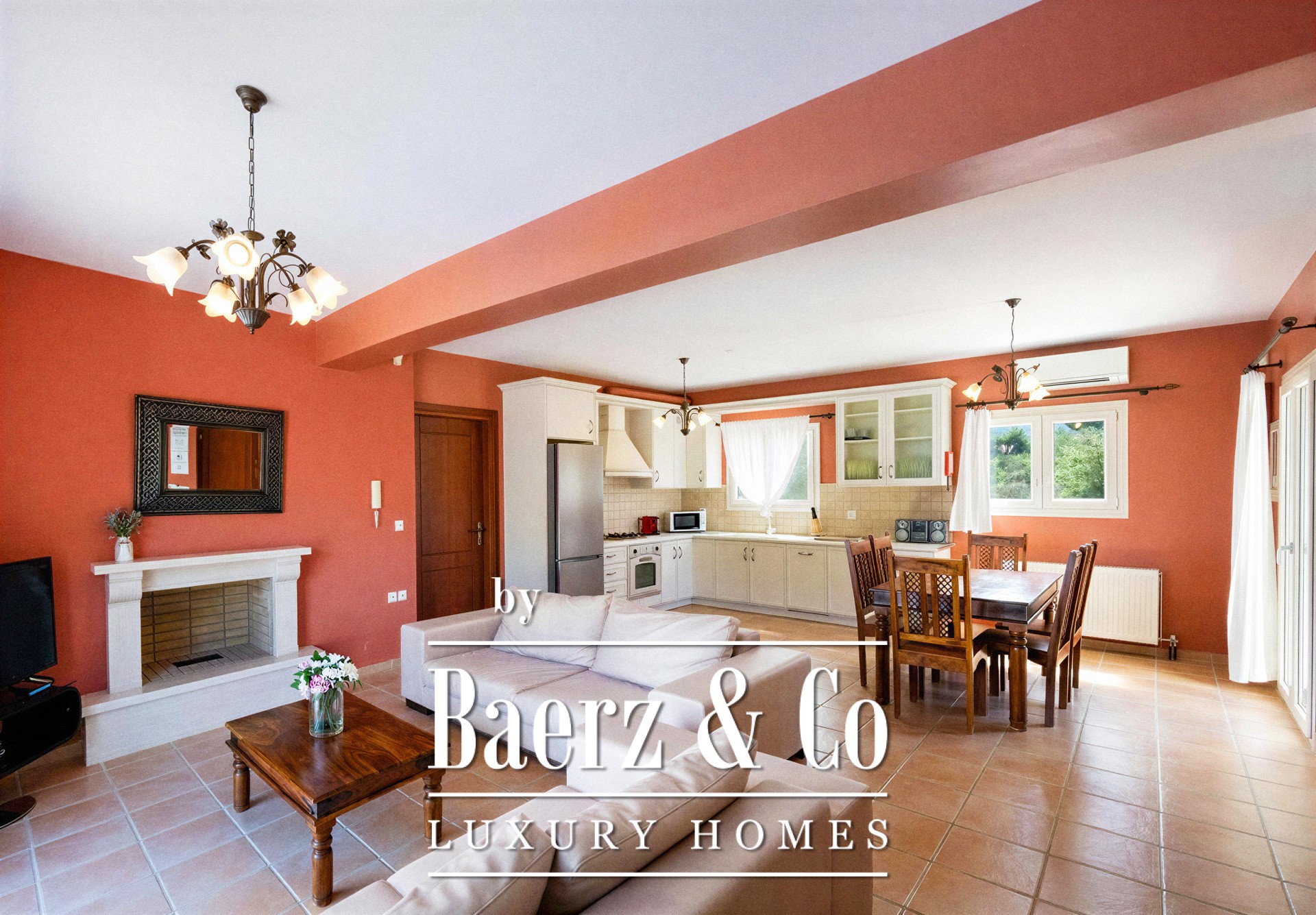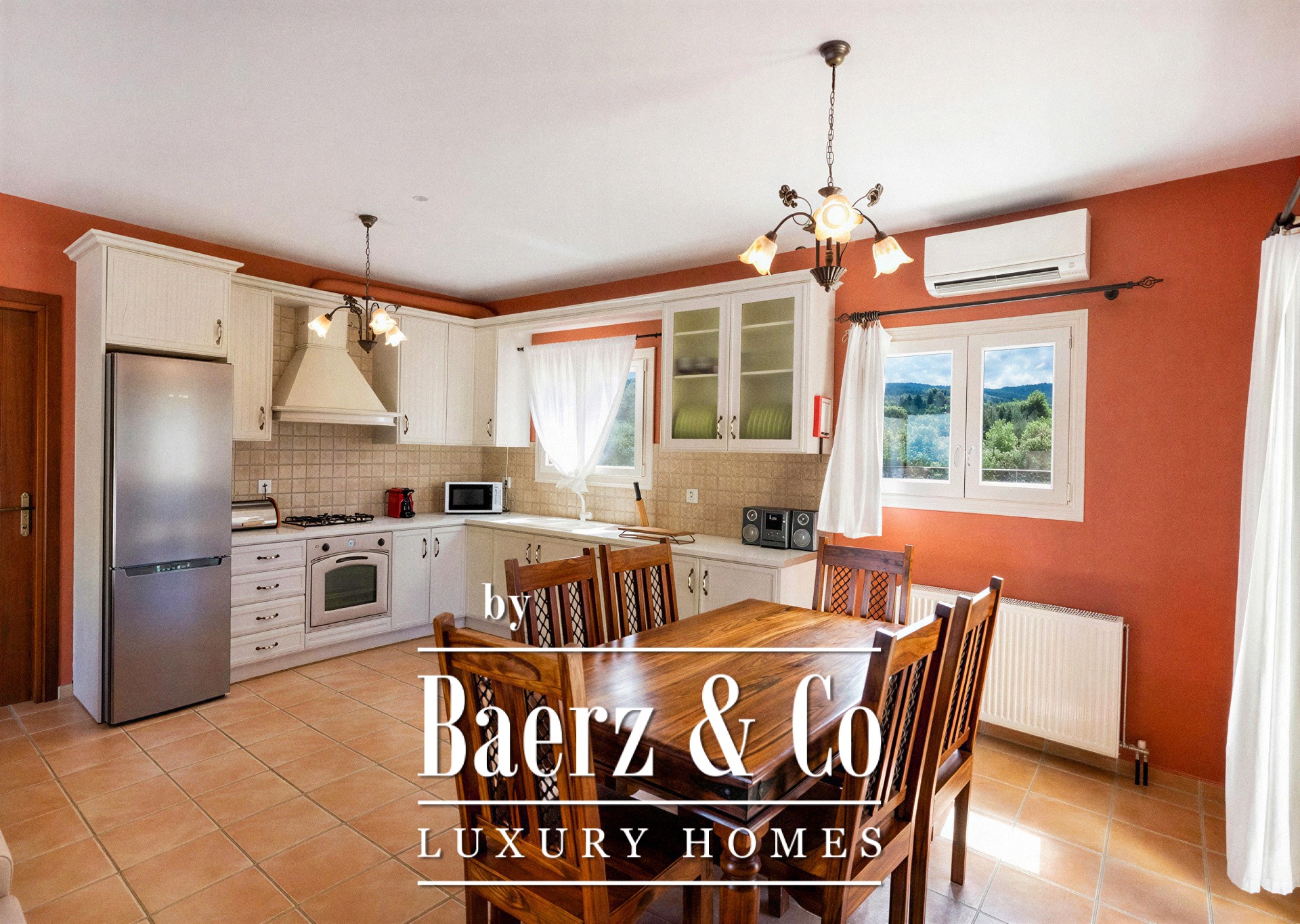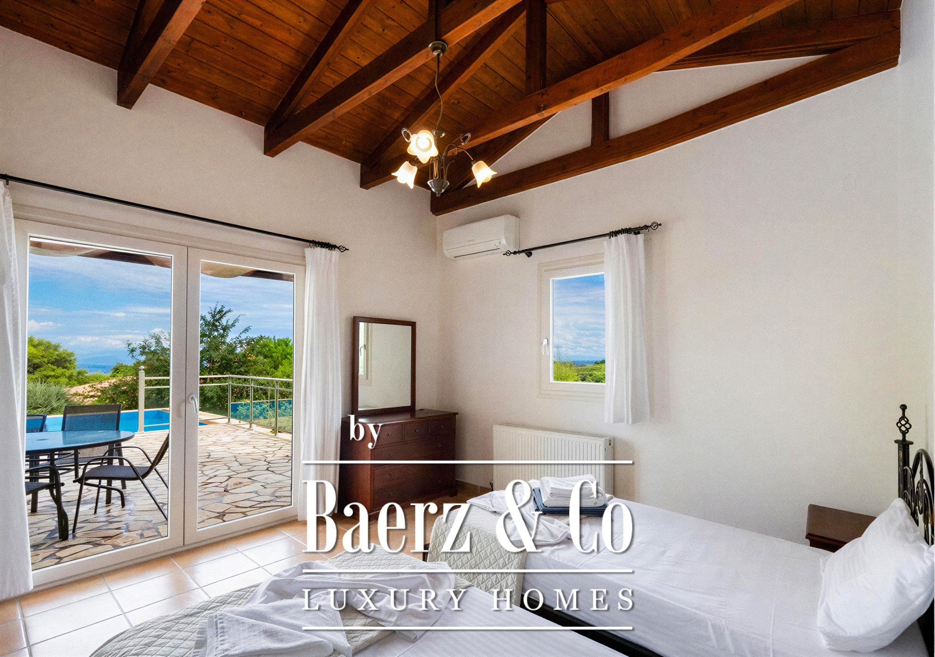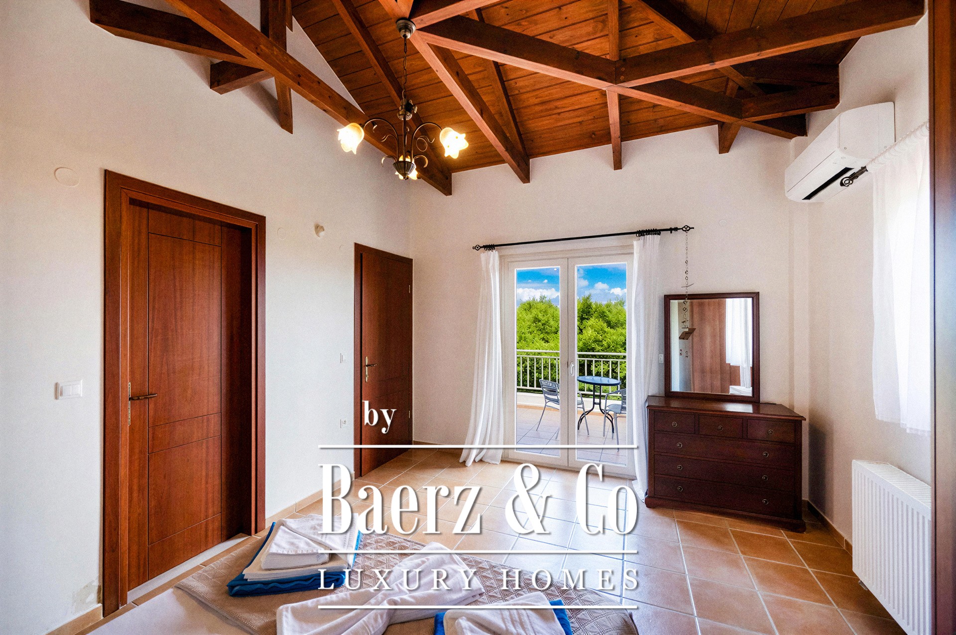 Each villa spans 109 m² over two levels, designed for both quality and functional living. Interiors feature open-plan spaces filled with natural light, large windows, and seamless transitions from kitchen and living areas to the outdoors. Both villas include ensuite bedrooms on each level, as well as guest WCs and balconies designed to capture unobstructed Ionian sunsets. The interiors are supported by autonomous oil heating, air conditioning, a solar water system, and double-glazed insulation for year-round comfort.