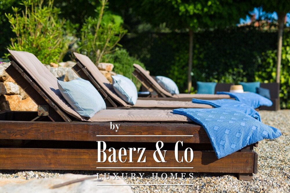 On the ground floor, a light-filled living area connects the kitchen, dining room, and an inviting lounge. From here, glass doors open to a terrace, pool, sun deck, and barbecue crafted for understated gatherings or private sunlit afternoons. The four bedrooms, each with its own bathroom, are found upstairs, with direct access to an elevated terrace and calm garden outlooks.