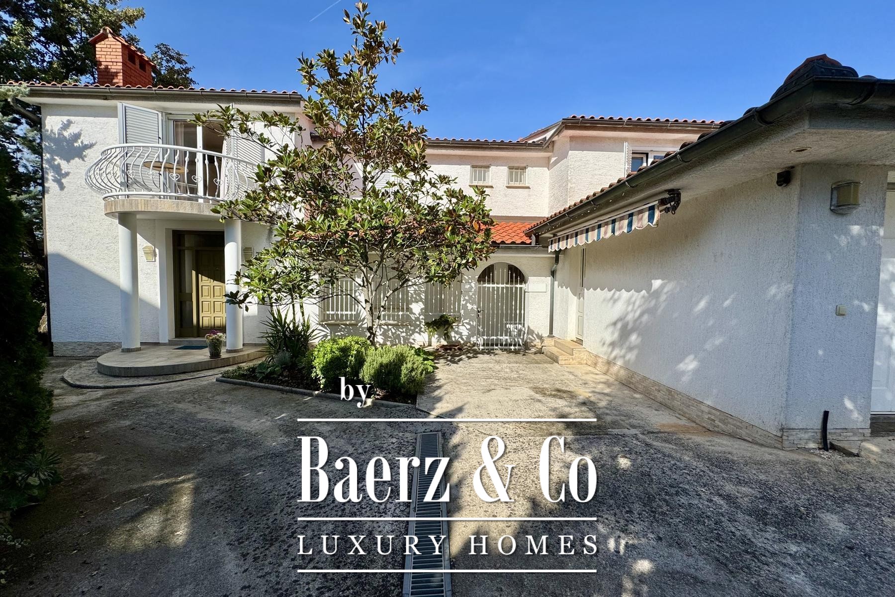 Krk, Malinska, Mediterranean house with sea view on a great location.The house extends over three floors, basement, ground floor and first floor.It consists of a larger two-story apartment with two bedrooms, two bathrooms, a storage room, a comfortable living room with a kitchen and a dining room that opens onto a beautiful covered terrace and two balconies.The second part of the house consists of 4 apartments. Each