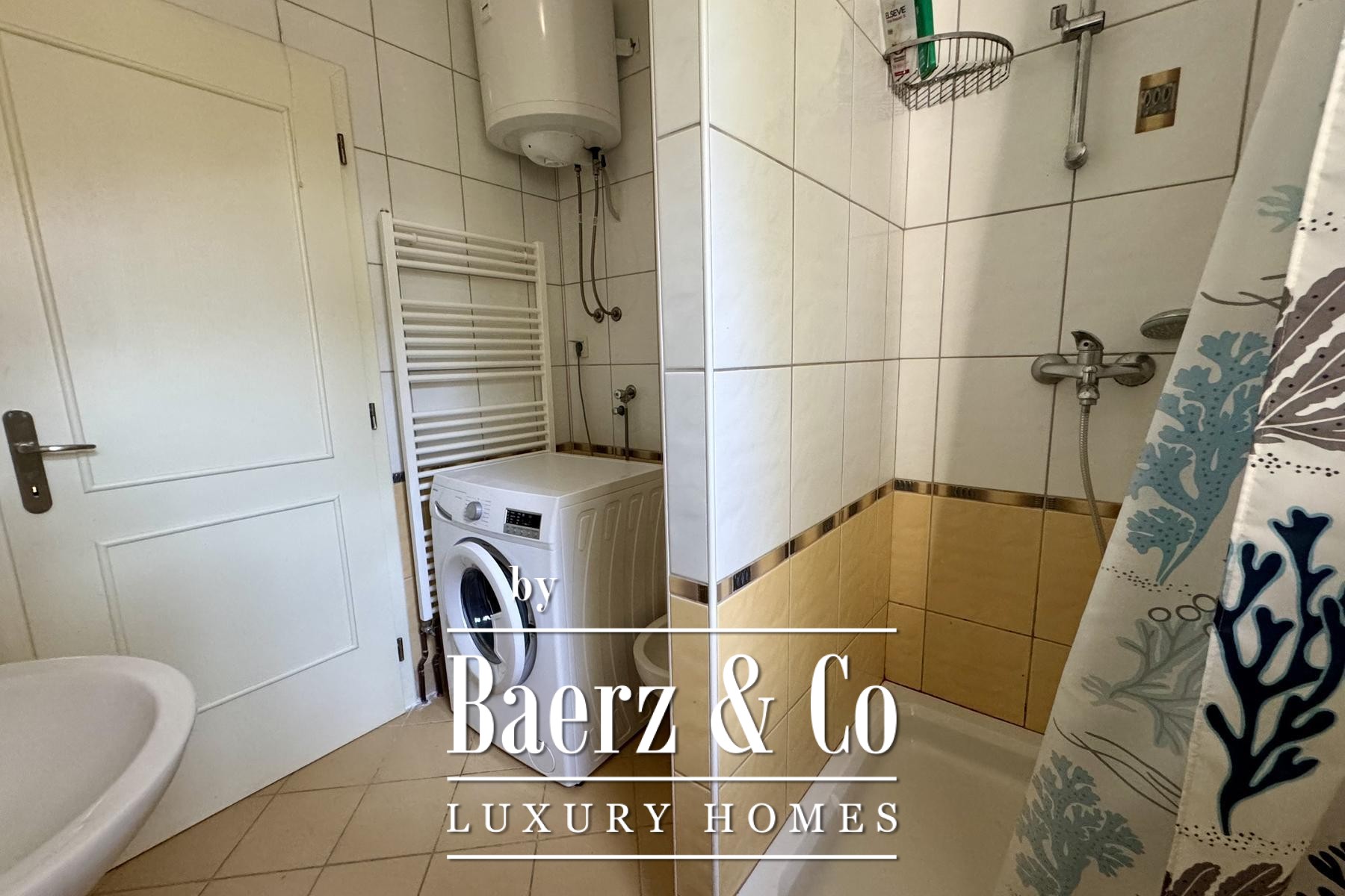 apartment consists of a bedroom, bathroom, kitchen, living room and terrace.Another additional apartment is located in the basement of the house and has two bedrooms, a kitchen, a bathroom and a storage room.There is also a garage in the yard of the house, and the garden itself is full of beautiful Mediterranean plants.Four more cars can be parked in the yard.For any additional information, feel free to contact us!