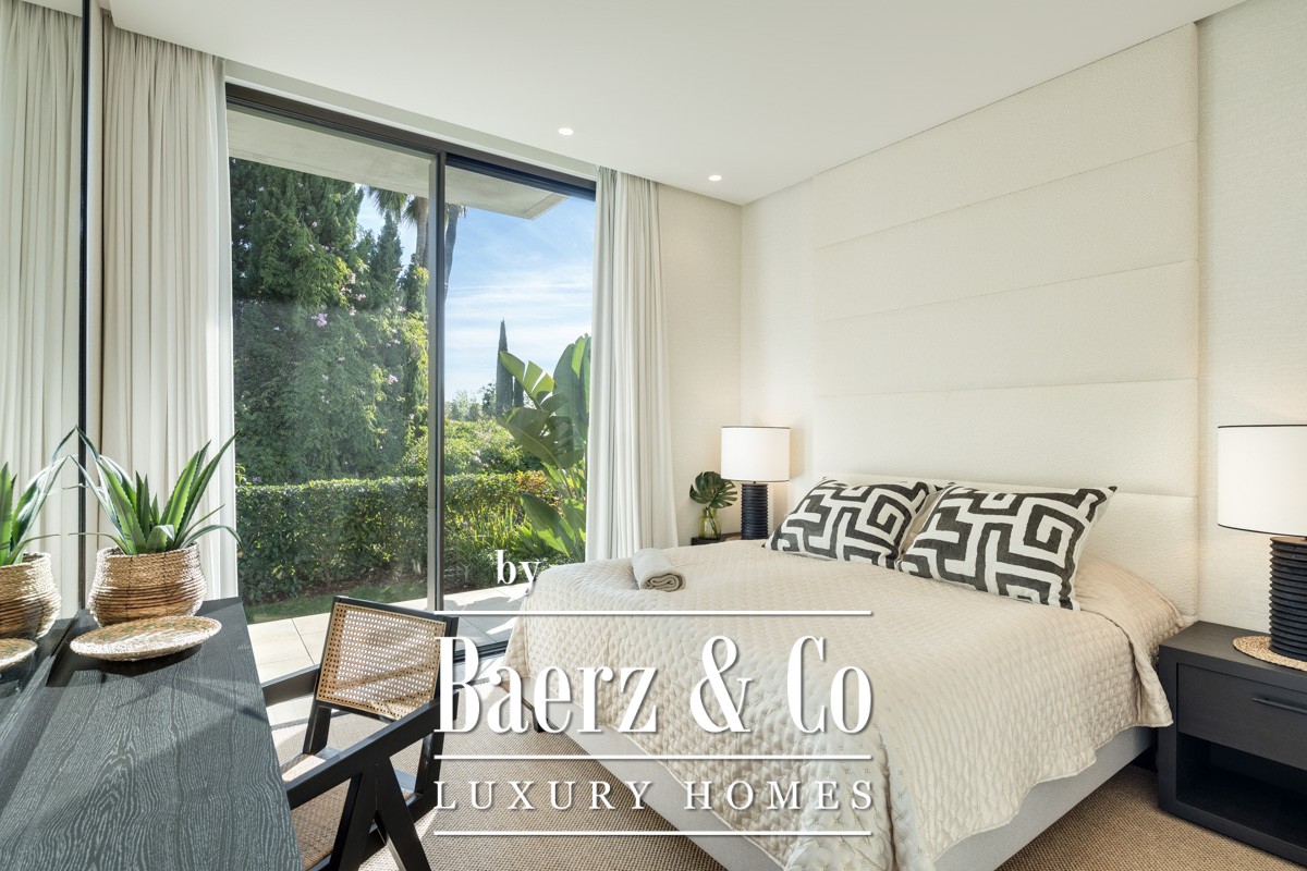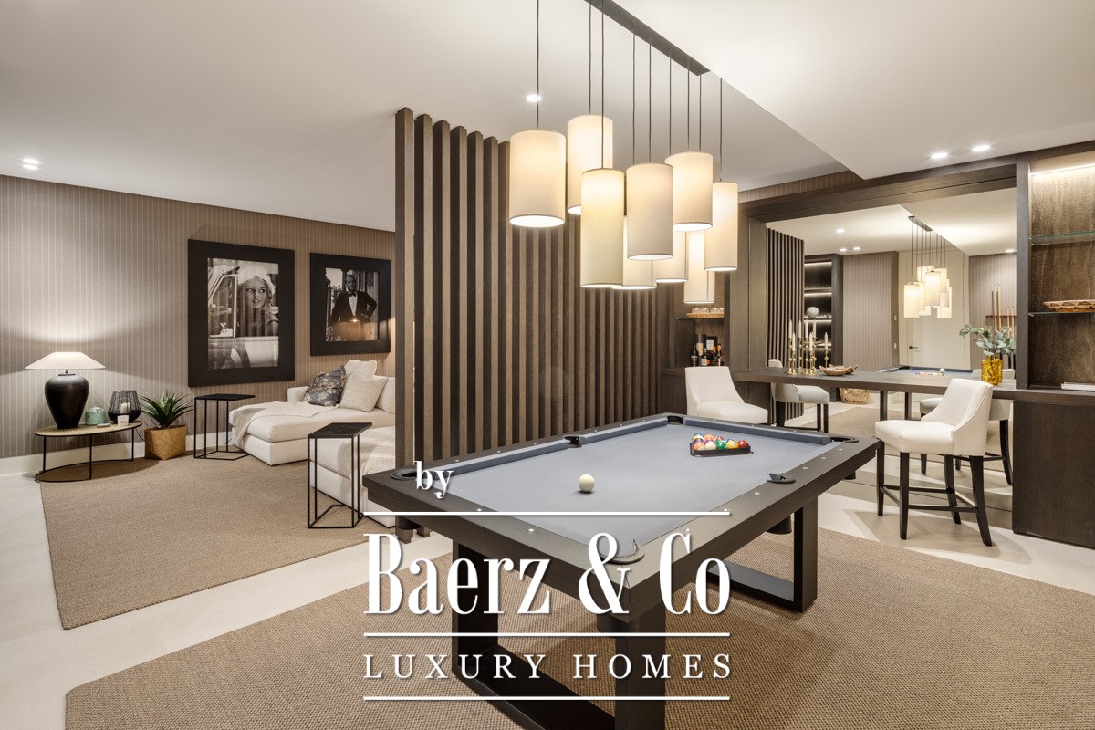 Amenities speak to a discreet luxury lifestyle: a private swimming pool, gym, cinema room, entertainment and games space, and a home equipped with air conditioning, underfloor heating, fireplace, and alarm system. Enjoy relaxed afternoons on terraces overlooking the sea, while the gated community with 24-hour security and a private guard ensures continuous peace of mind. Proximity to golf, beaches, and all local amenities completes the setting, offering a seamless rhythm of leisure and refinement. For those seeking a luxury villa for sale in Marbella, this property extends an invitation to a life attuned to timeless design and measured privacy.