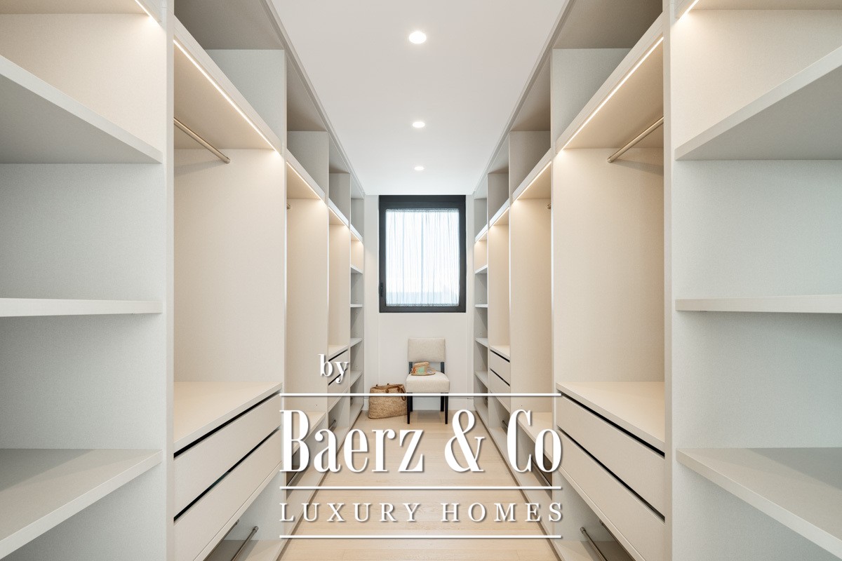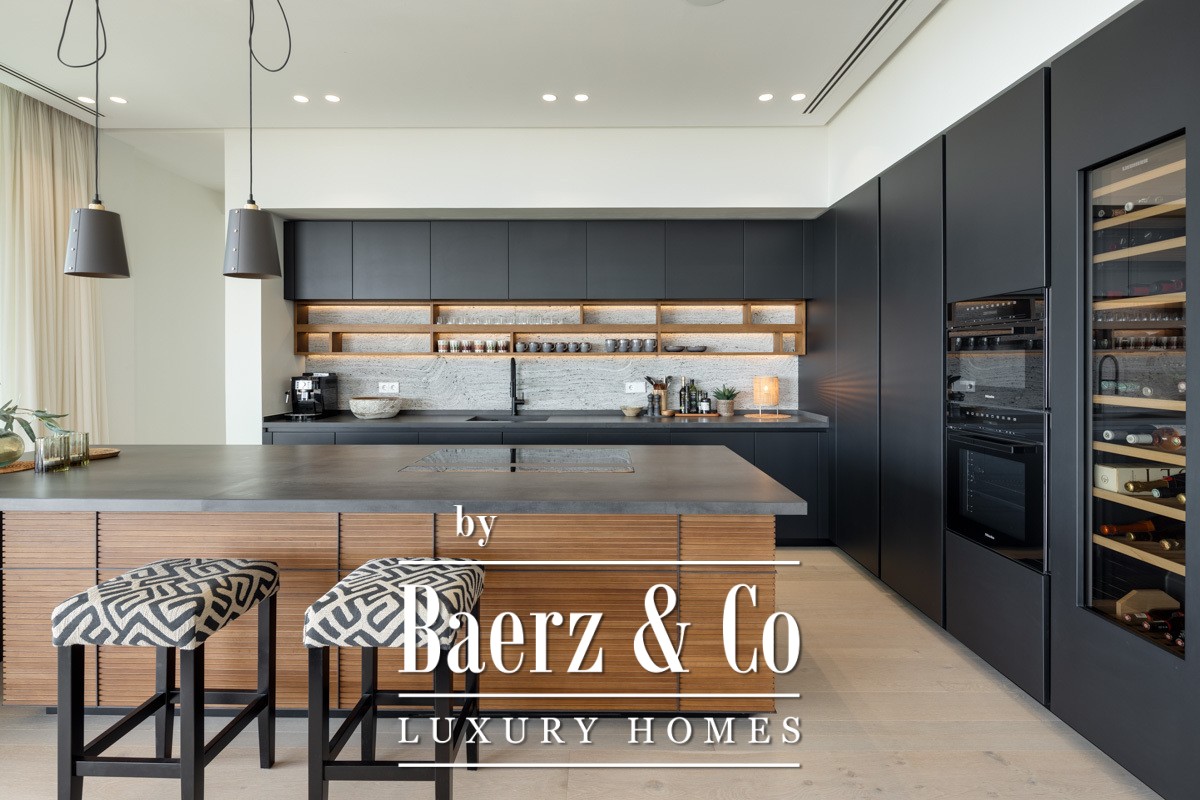 The state-of-the-art kitchen, fitted with premium appliances, serves both intimate meals and culinary gatherings with equal ease. A fully equipped housekeeper or au pair apartment on the lower floor ensures discreet convenience for staff or prolonged guest visits.