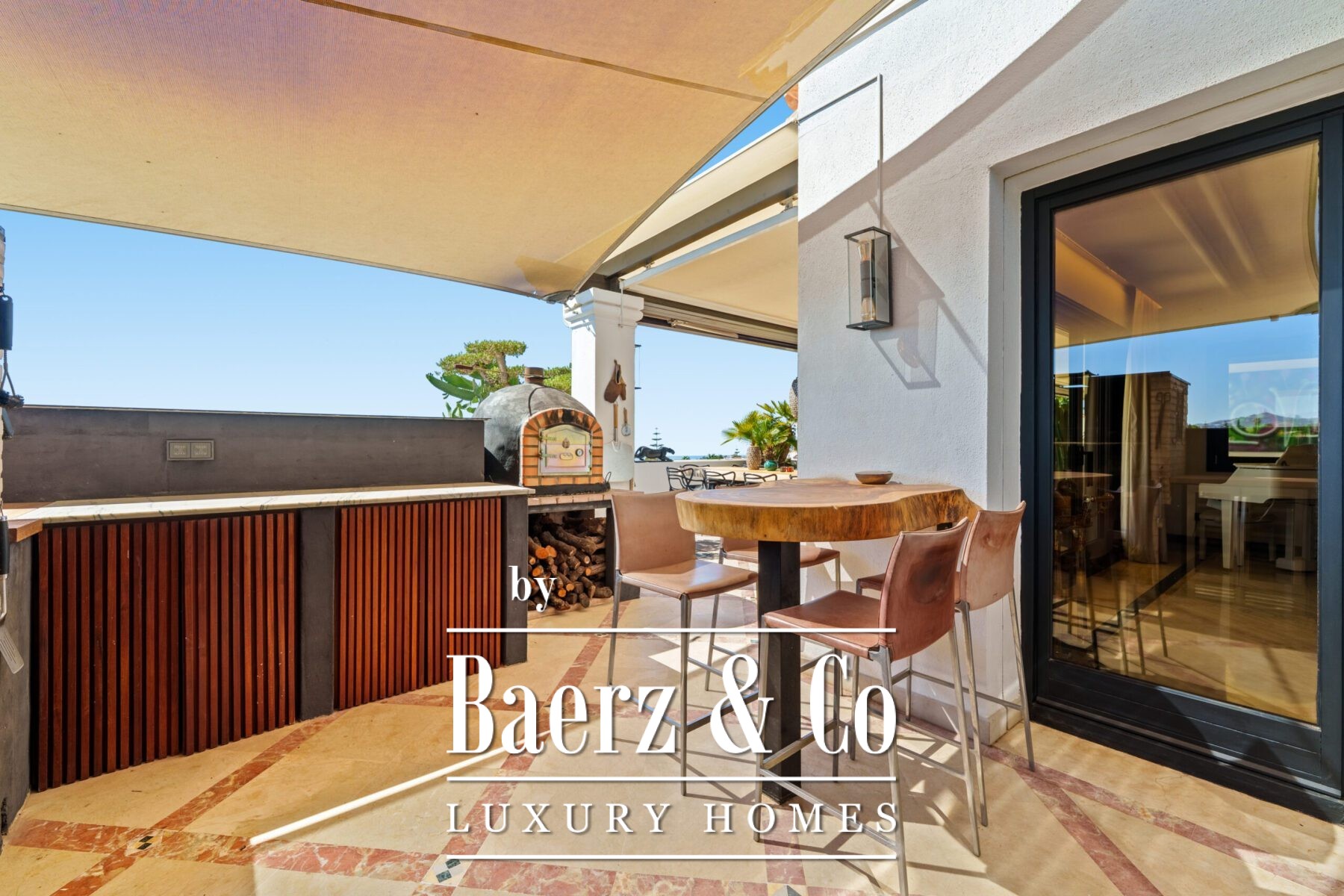 Residents of this penthouse enjoy 24-hour security, beautifully landscaped gardens, and access to multiple swimming pools. The property is located mere minutes from Marbella’s celebrated restaurants, beaches, and amenities. Features include air conditioning, underfloor heating, wood-burning fireplace, and a fully equipped outdoor kitchenette with barbecue and stone oven. This luxury penthouse for sale on the Golden Mile offers rare privacy, style, and cinematic views, all within a secure and distinguished setting.