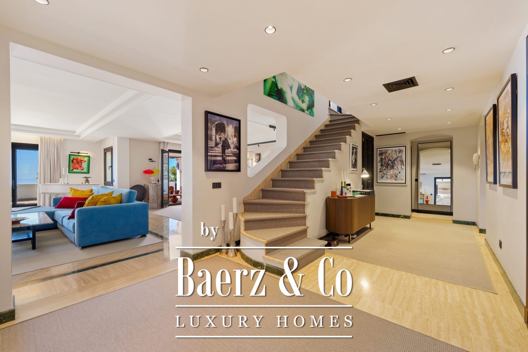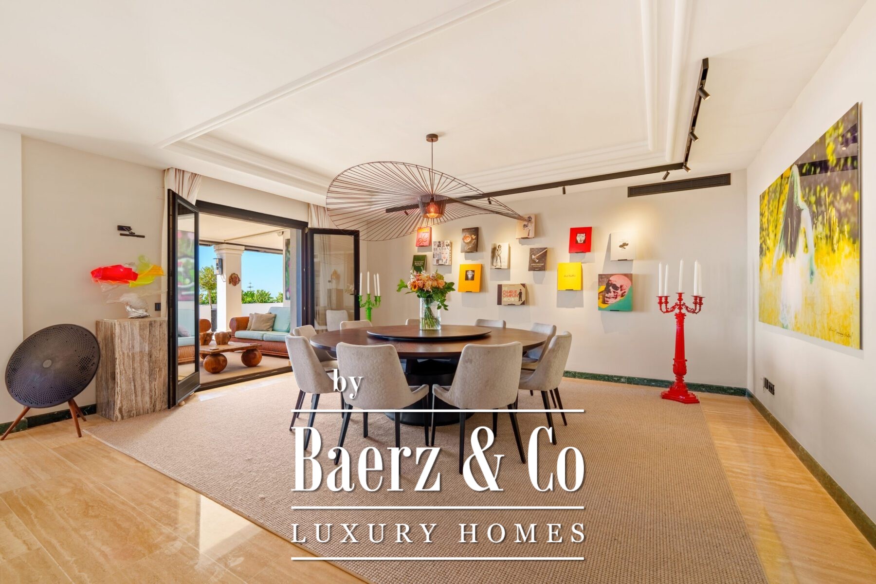 This duplex penthouse Marbella Country Club Golden Mile sets a new standard for refined living on Marbella’s coveted Golden Mile. The property spans 376 m², offering four bedrooms and five bathrooms within one of the most exclusive gated communities in Marbella. Expansive interiors are filled with natural light, where spacious living and dining areas seamlessly flow into a contemporary kitchen and a private wine cellar. Every element, from the refined décor to high-quality finishes, is crafted to balance comfort and sophistication.