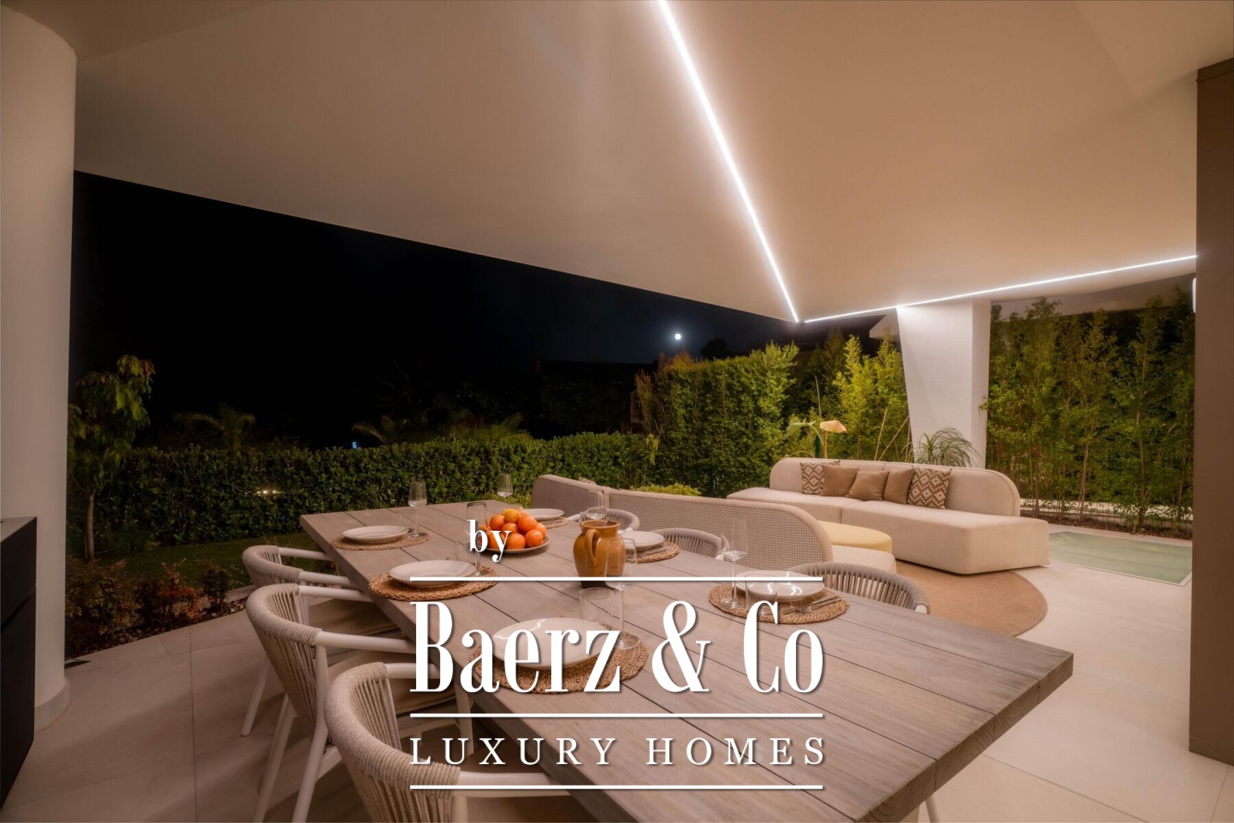 Contemporary villa Nueva Andalucía Marbella offers refined architecture and exceptional privacy within a prestigious gated community in the heart of Marbella. This four bedroom, four bathroom residence is a study in contemporary design, defined by bold geometric lines and a palette of natural materials in calm, neutral hues. The villa spans 665 m² on a 665 m² plot, ensuring a sense of space without compromise.