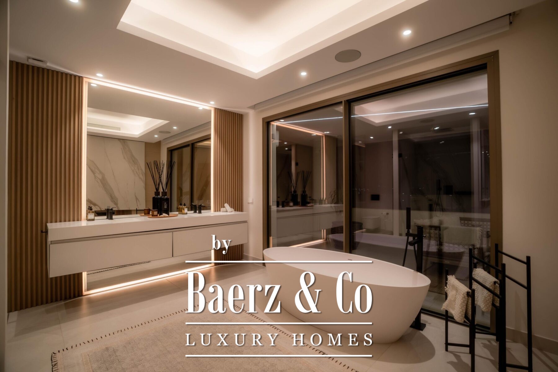 Advanced home technology includes a Lutron smart home system, underfloor heating, air conditioning, and Bang & Olufsen integrated entertainment. Fitness amenities are highlighted by a private gym with premium Eleiko equipment. The garage accommodates two to three cars and the villa stands just moments from shops, restaurants, golf, and the port. The property comes fully furnished in a style that is both welcoming and sophisticated, an exceptional offering in Marbella’s sought-after Nueva Andalucía.