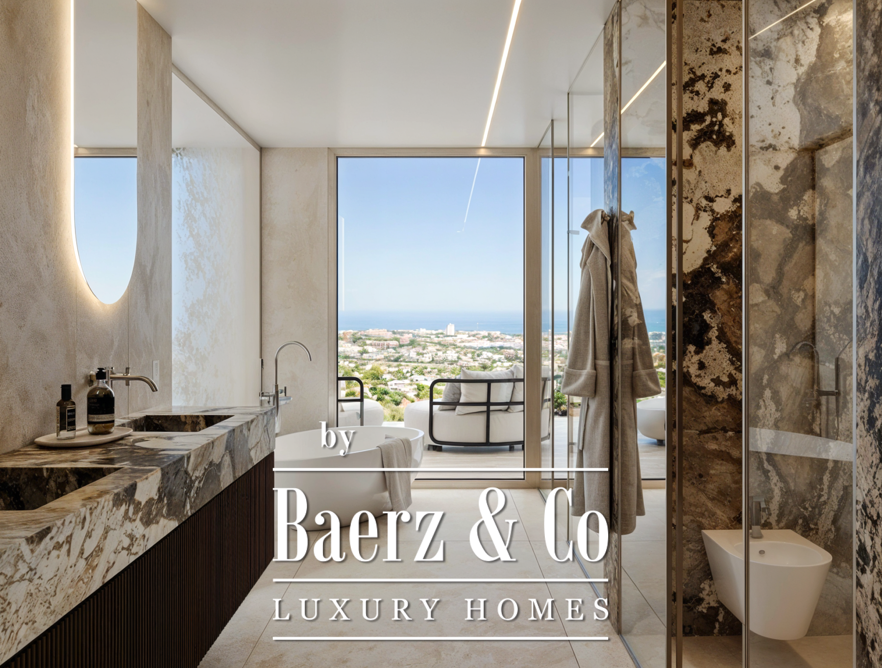 The architecture creates a continuous dialogue with the panoramic views of the bay of Marbella and the Mediterranean Sea, inviting light into every generous space. Master bedrooms are designed with elegance and comfort in mind, accompanied by sophisticated bathrooms and large terraces. Each residence features its own individual pool and two parking spaces within a secure, gated complex, ensuring privacy and peace.