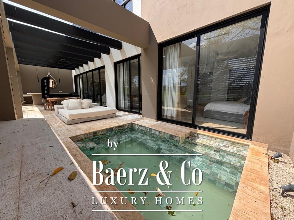 Country home Merida unfolds at the heart of Yucatan’s most exclusive gated enclave, conceived by acclaimed architects and interior designers for a life of effortless enjoyment. This fully furnished residence spans 426 m², offering a refined balance of timeless sophistication and contemporary comfort. The property’s open living and dining spaces invite natural light and garden views, while the enclosed gourmet kitchen stands ready with premium appliances. The master suite on the ground floor opens to panoramic golf course vistas, featuring a walk-in closet, private bathroom, and a secluded study or TV room. Two upstairs bedrooms, both with private bathrooms and walk-in closets, adjoin a tranquil family area and a broad terrace overlooking manicured greens.