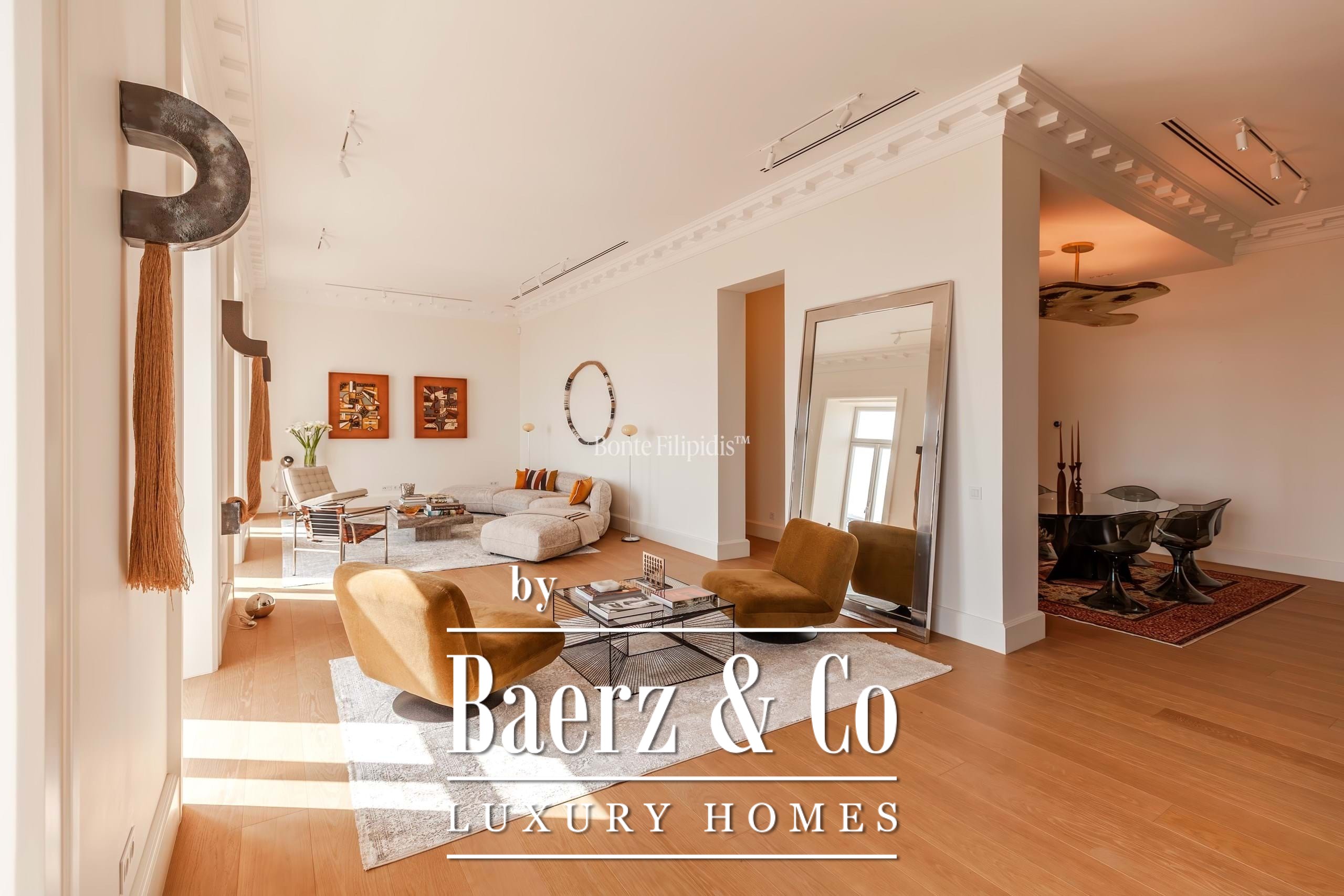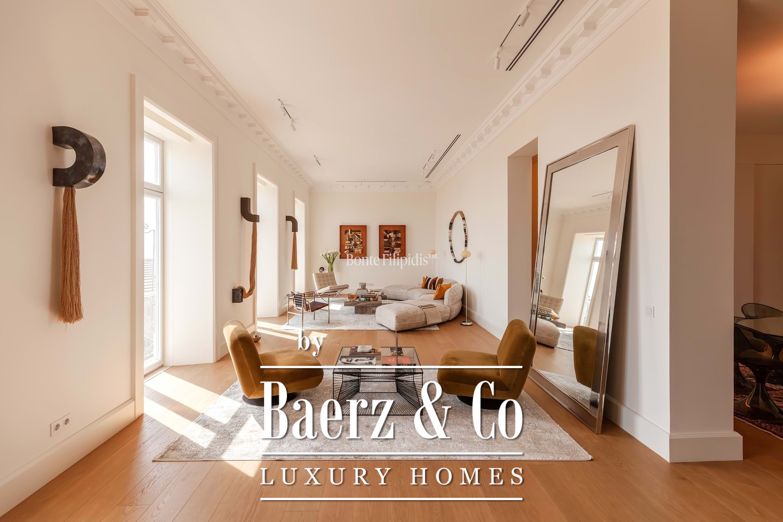 The 4 bedroom apartment Misericórdia with river views is quietly situated in one of Lisbon's most evocative neighborhoods, balancing classic architecture with contemporary resonance. Occupying 362 m² of living area, this residence offers both scale and subtlety, refined through five bathrooms and a fluid plan prioritizing seamless movement between private and communal spaces.