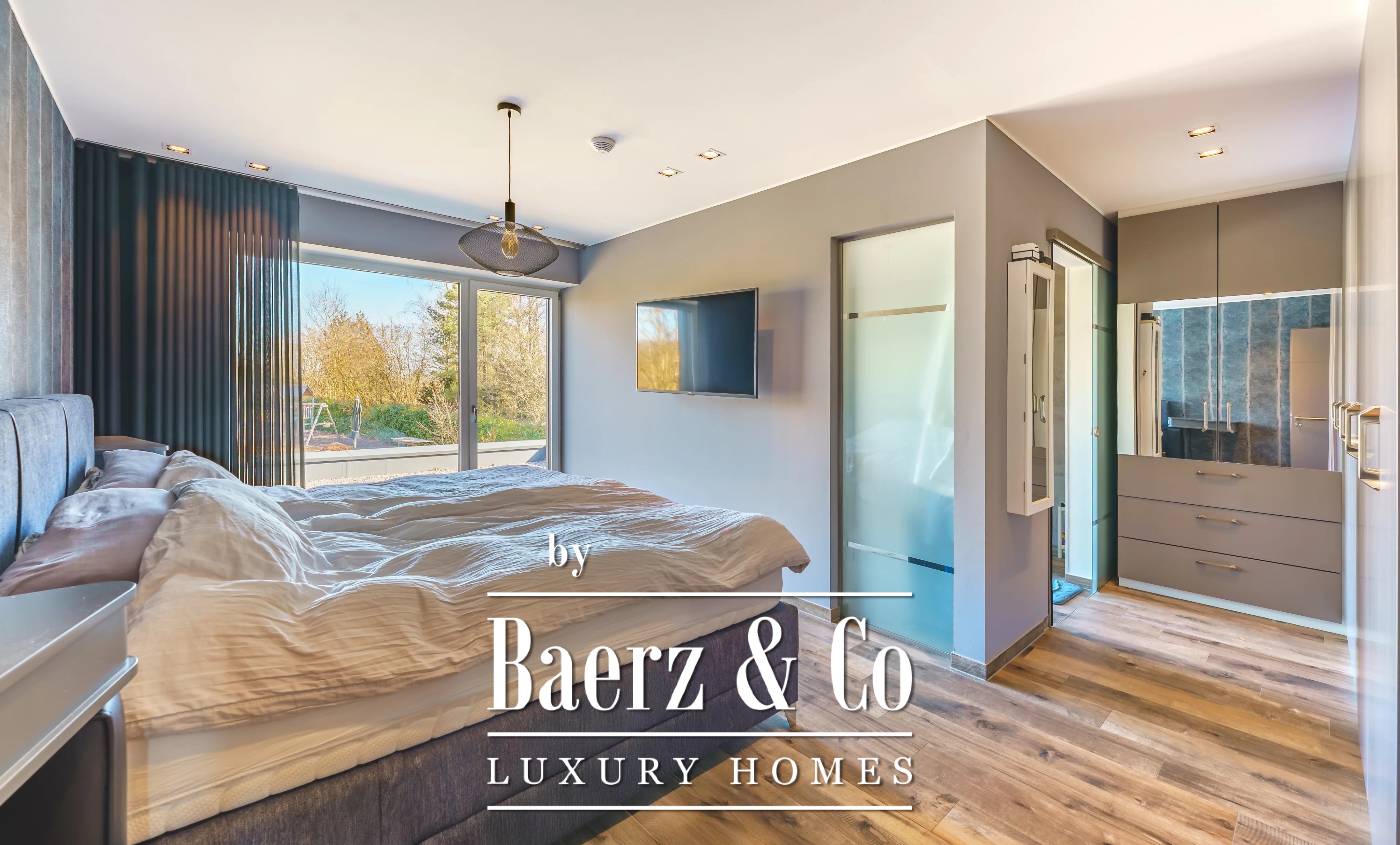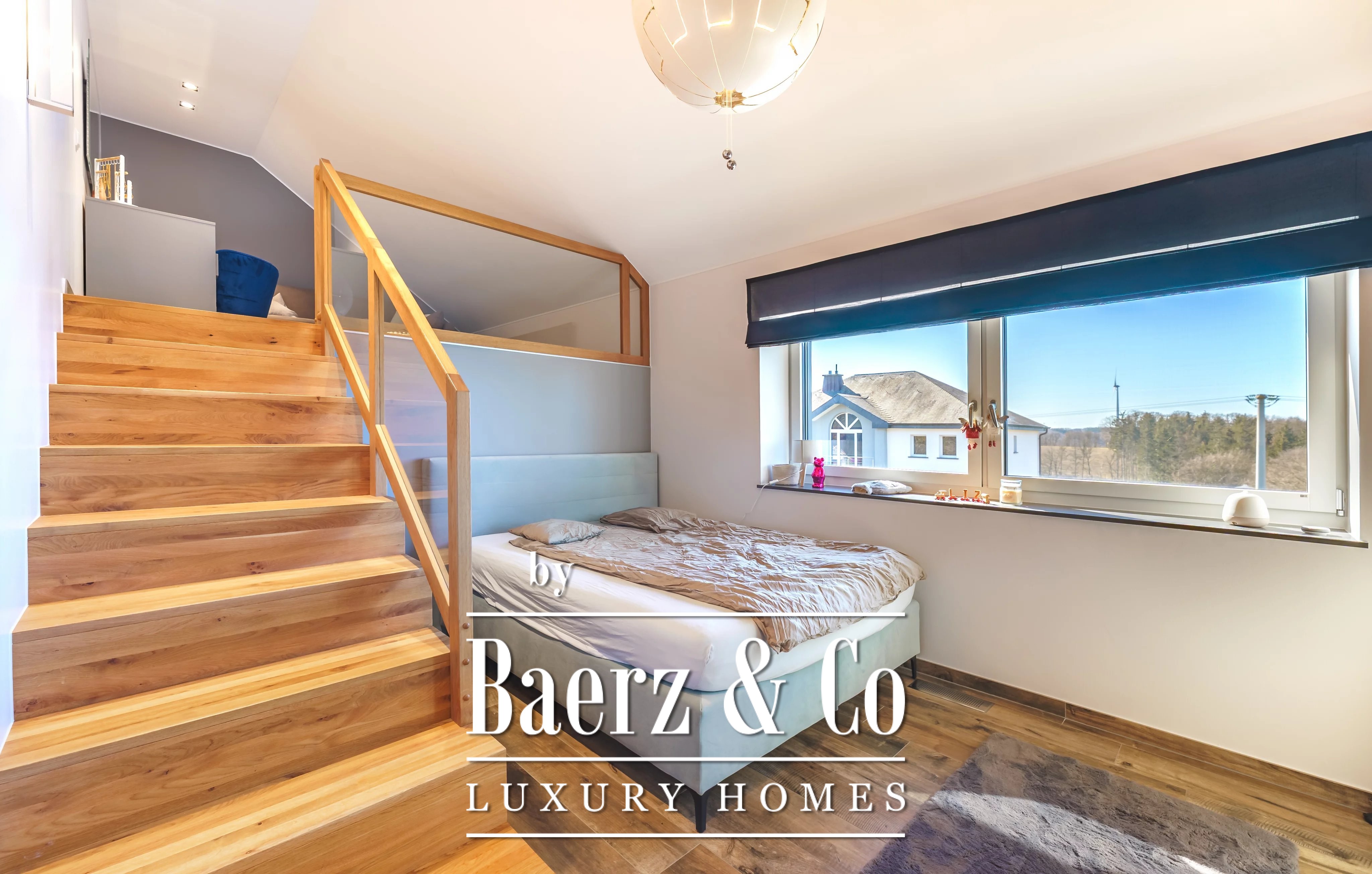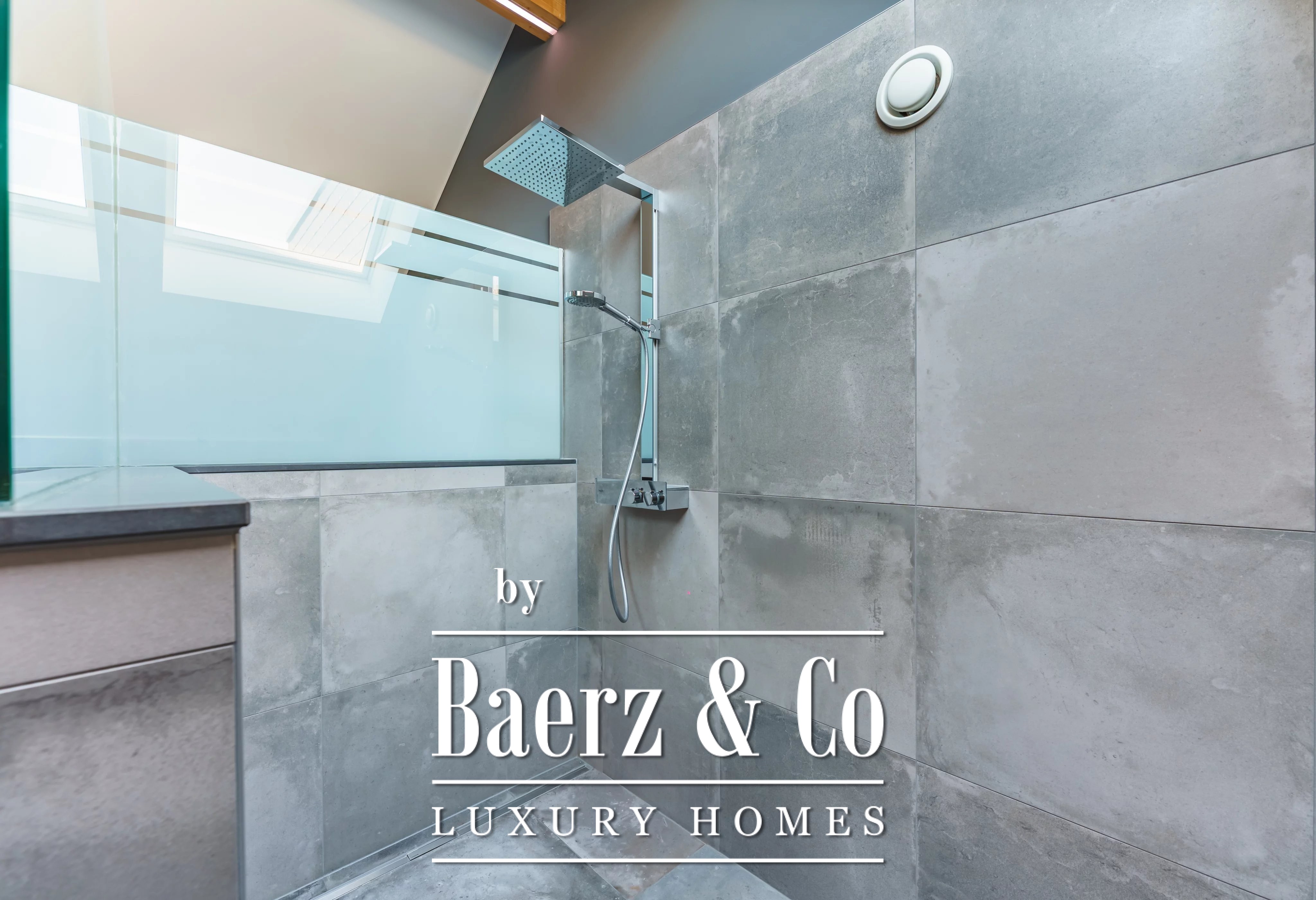 Upstairs, an additional living room creates a private retreat for family gatherings. There are five bedrooms and four bathrooms, including a master suite with a dressing room, private shower room, and a guest bedroom with en-suite. The laundry room is discreet and efficient, supporting daily comfort.