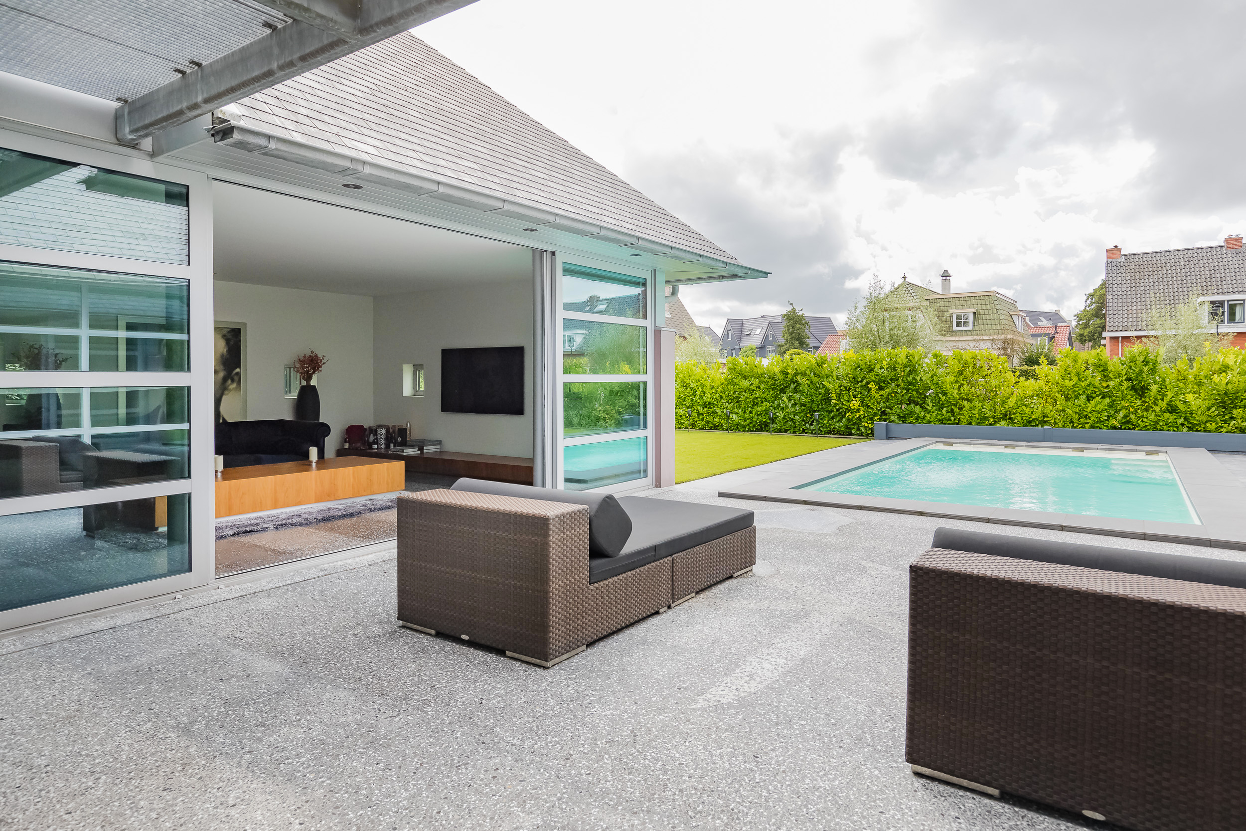 This beautiful villa, designed by Hans van Egmond Architects, was very carefully created with a lot of customization and only top class materials were used. The common thread throughout the design and construction is that no concessions were made anywhere and privacy was paramount.