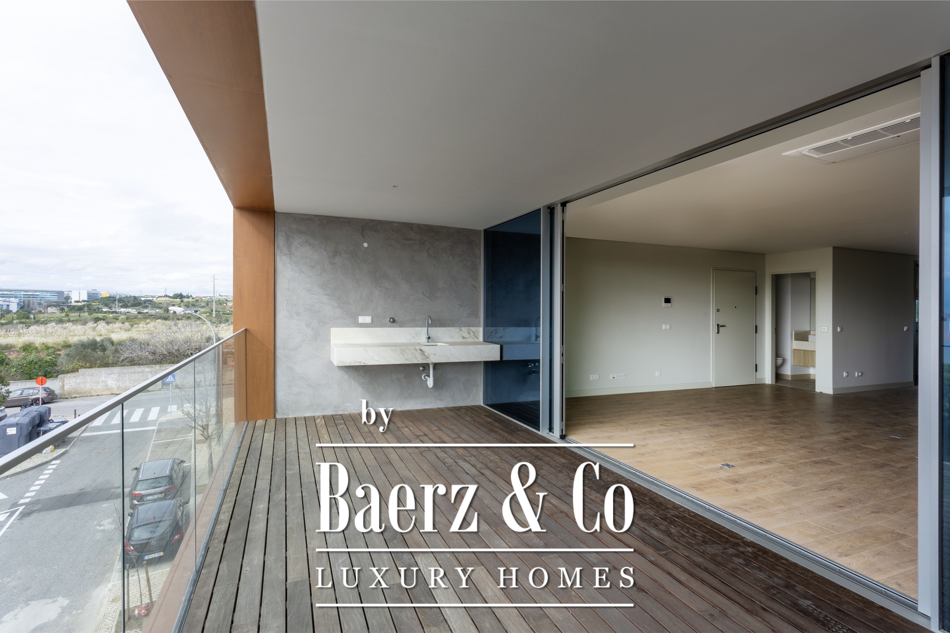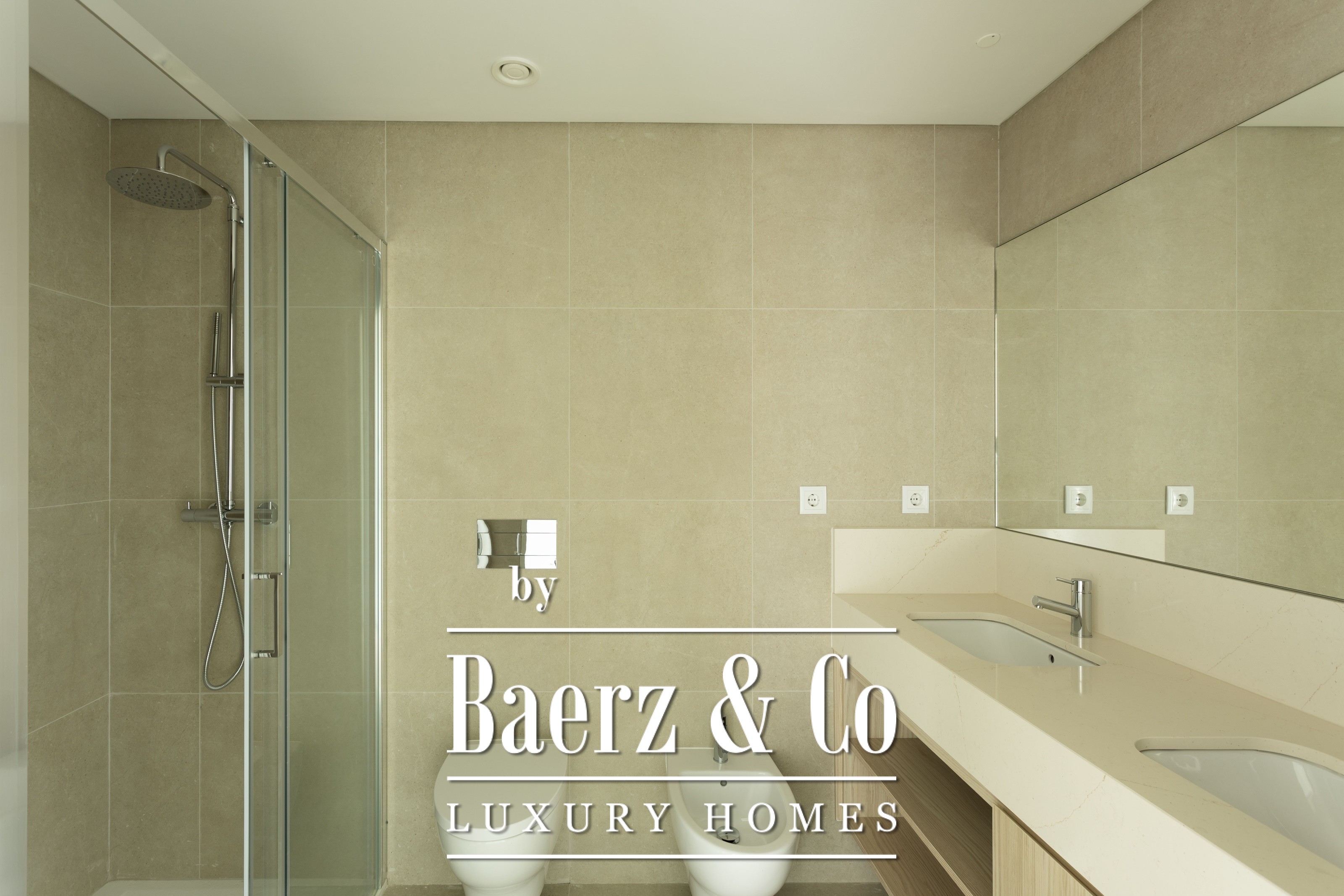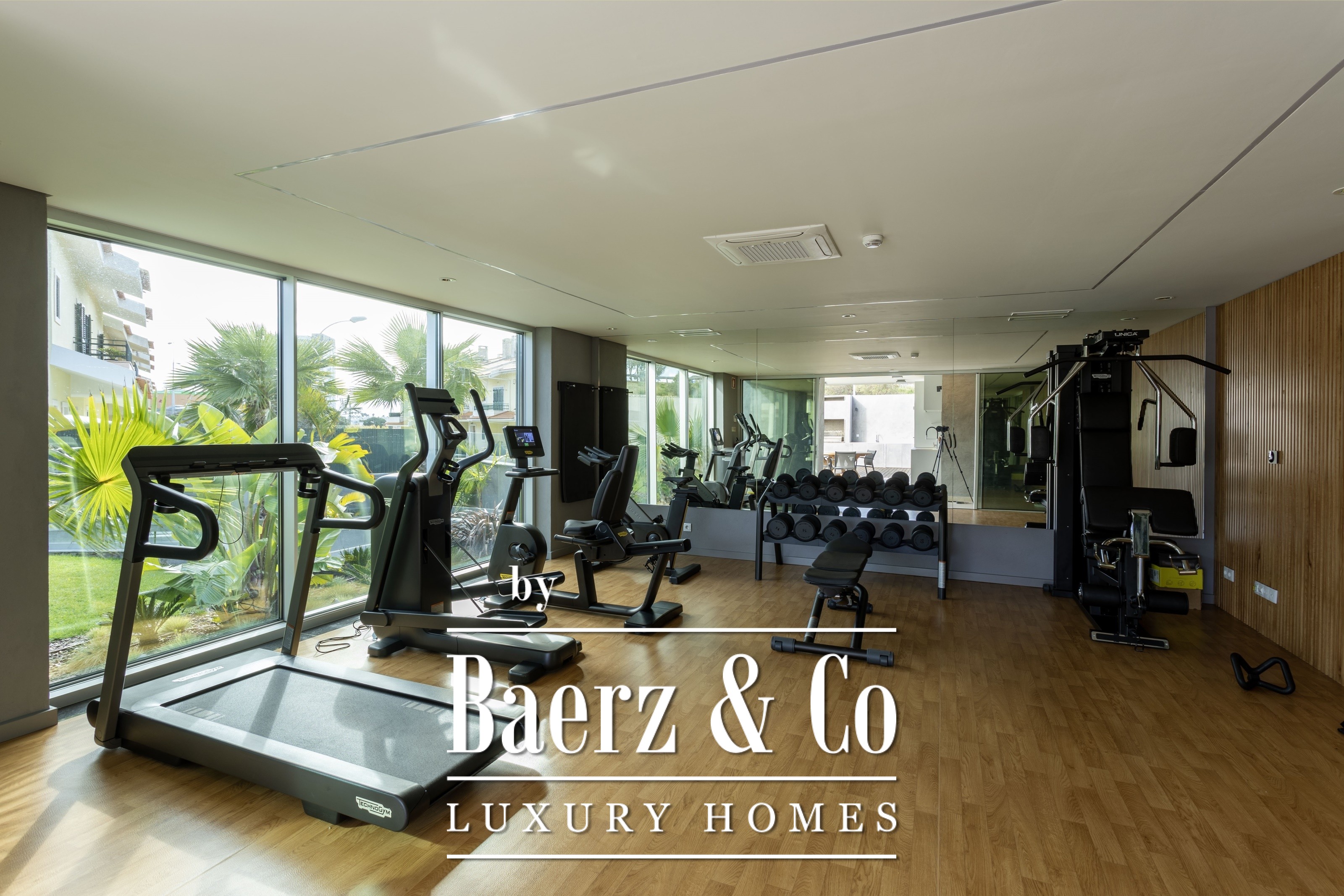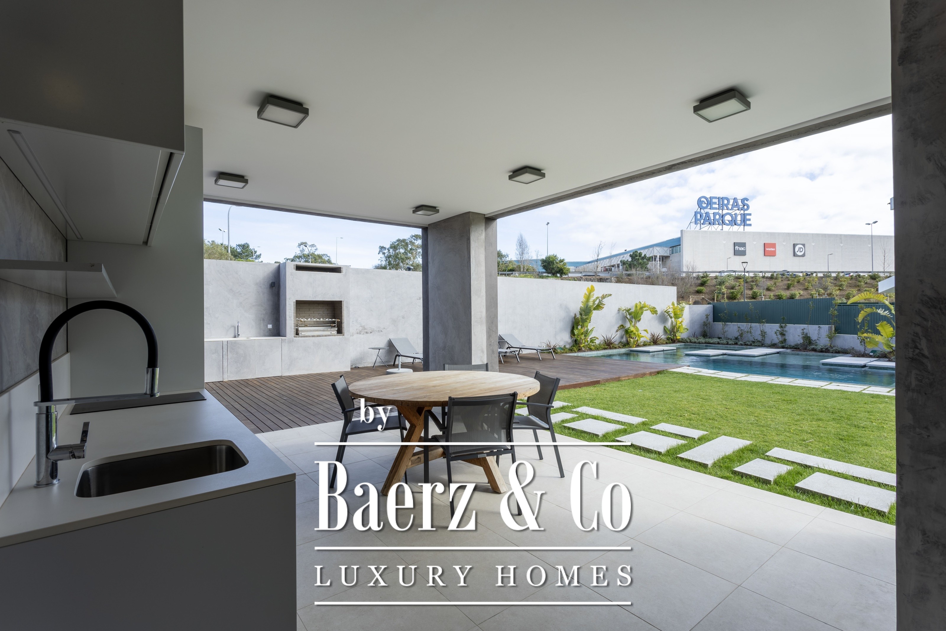 large living room with electric curtains, with access to a balcony, American style kitchen with Electrolux appliances and spacious laundry room with cabinets, sink and washing machine and dryer. All rooms have air conditioning.The condominium is on a quiet street near the Oeiras Parque Shopping Mall and 10 minutes from the beach in Oeiras.
