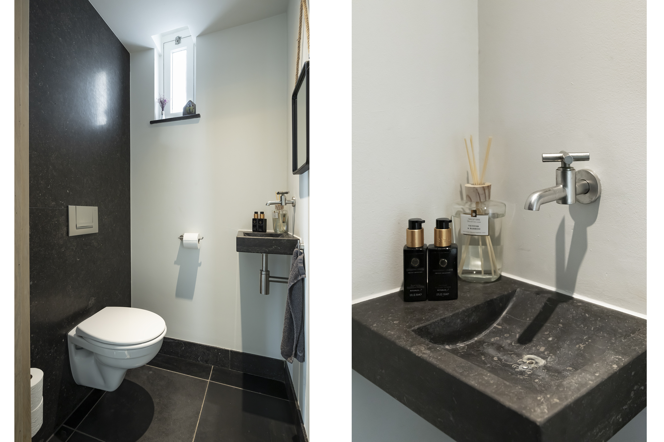 The rear of the house is primarily practical. Adjacent to the kitchen is an extra toilet with a small sink, a utility room with laundry facilities, and plenty of practical storage in the custom-made built-in wardrobes.