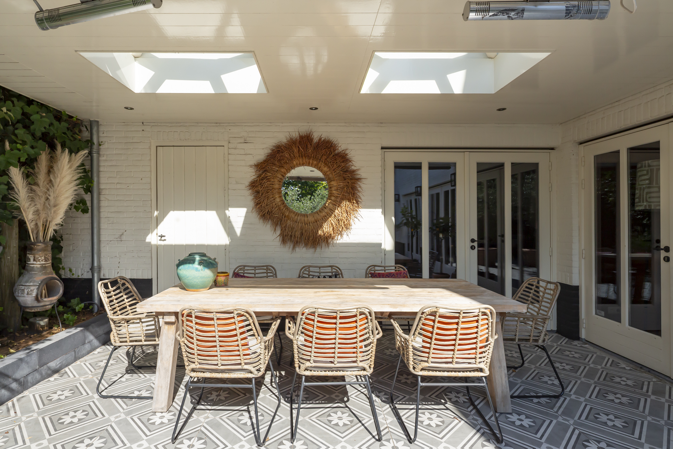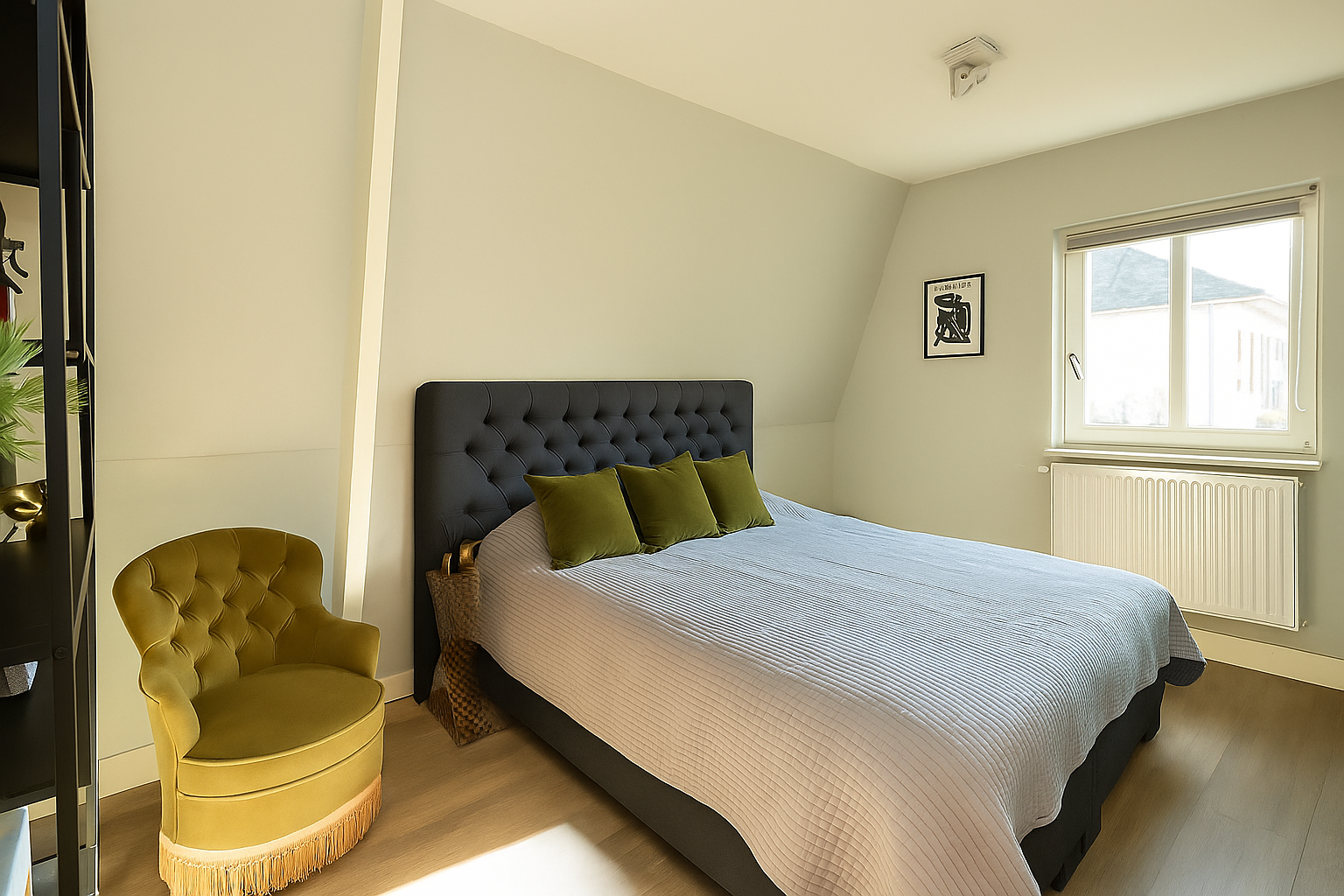 Outside, two distinct gardens allow for year-round enjoyment and complete privacy, with mature planting and stone paving. The property includes off street parking for multiple vehicles behind secure gates, and the garage is accessible from both the front and the rear. Extensive insulation and modern heating underline comfort. The location provides immediate access to natural reserves, cultural destinations, and the vibrant life of Oisterwijk, recognized for its rich amenities and green surroundings.