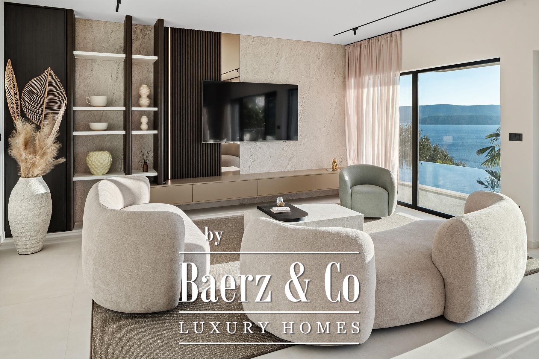 Luxury villa Omiš presents an interplay of contemporary architecture and harmonious sea views across four spacious floors. This property offers 415 m² of living space on a 600 m² plot, situated 300 metres from the Adriatic. Every level of the villa commands unobstructed panoramic sea views, creating an ambiance shaped by light, tranquility, and the rhythmic movement of water.